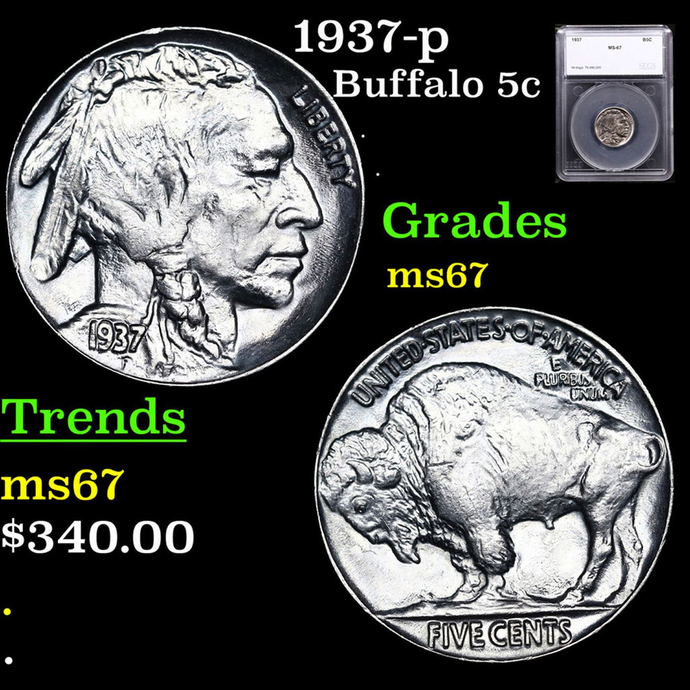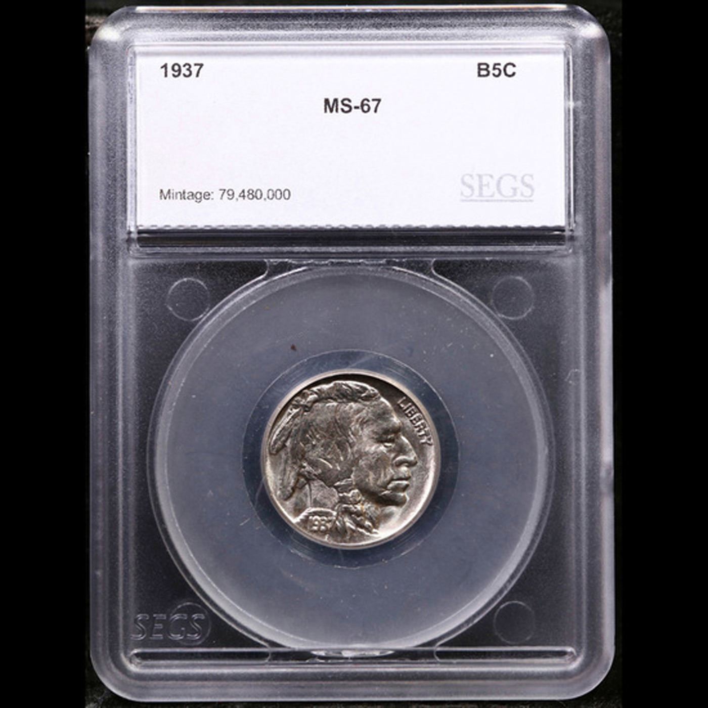 1937-p Buffalo Nickel 5c Graded ms67 By SEGS.