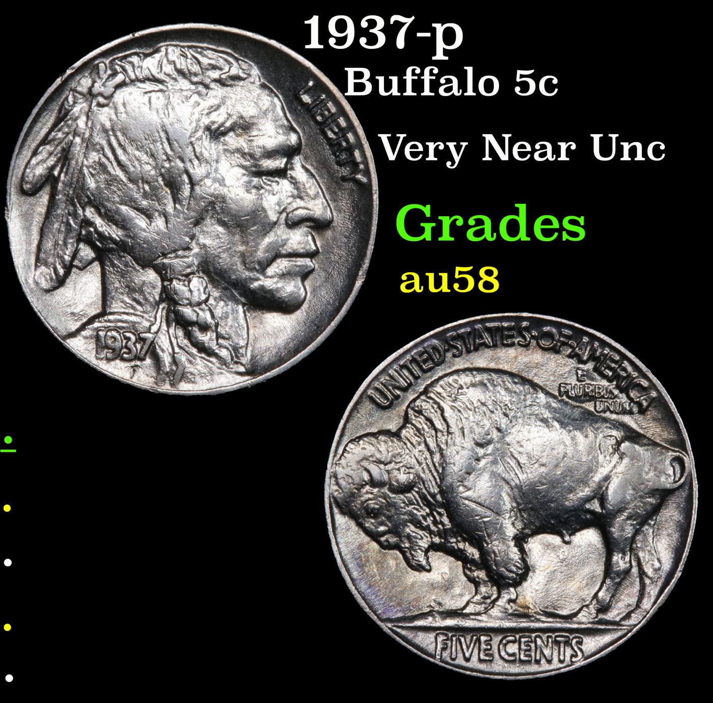 1937-p Buffalo Nickel 5c Grades Choice AU/BU Slider.