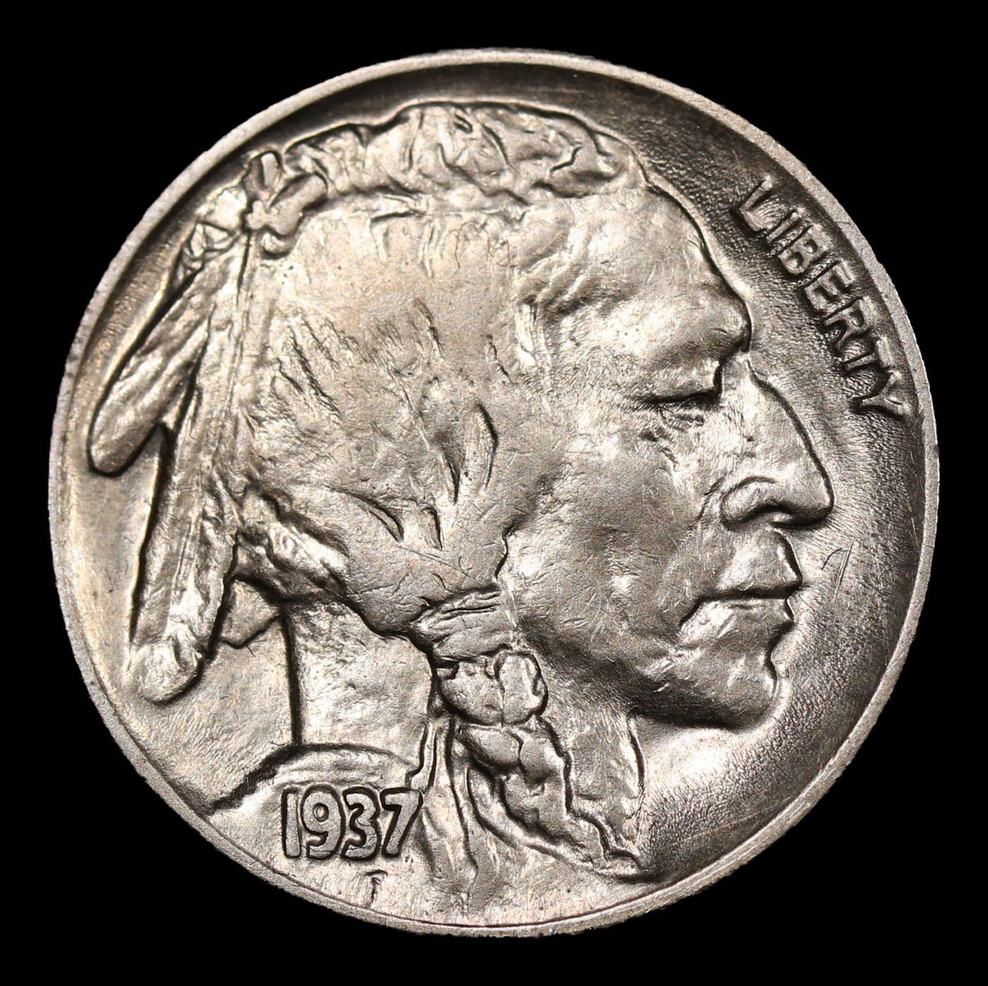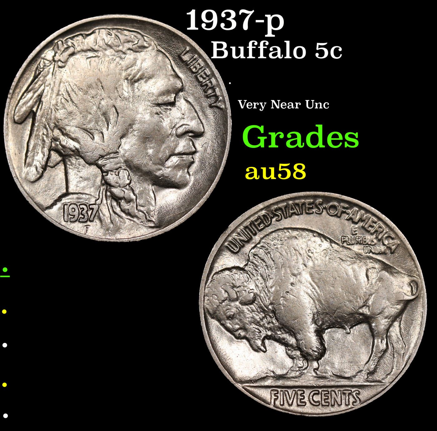 1937-p Buffalo Nickel 5c Grades Choice AU/BU Slider.