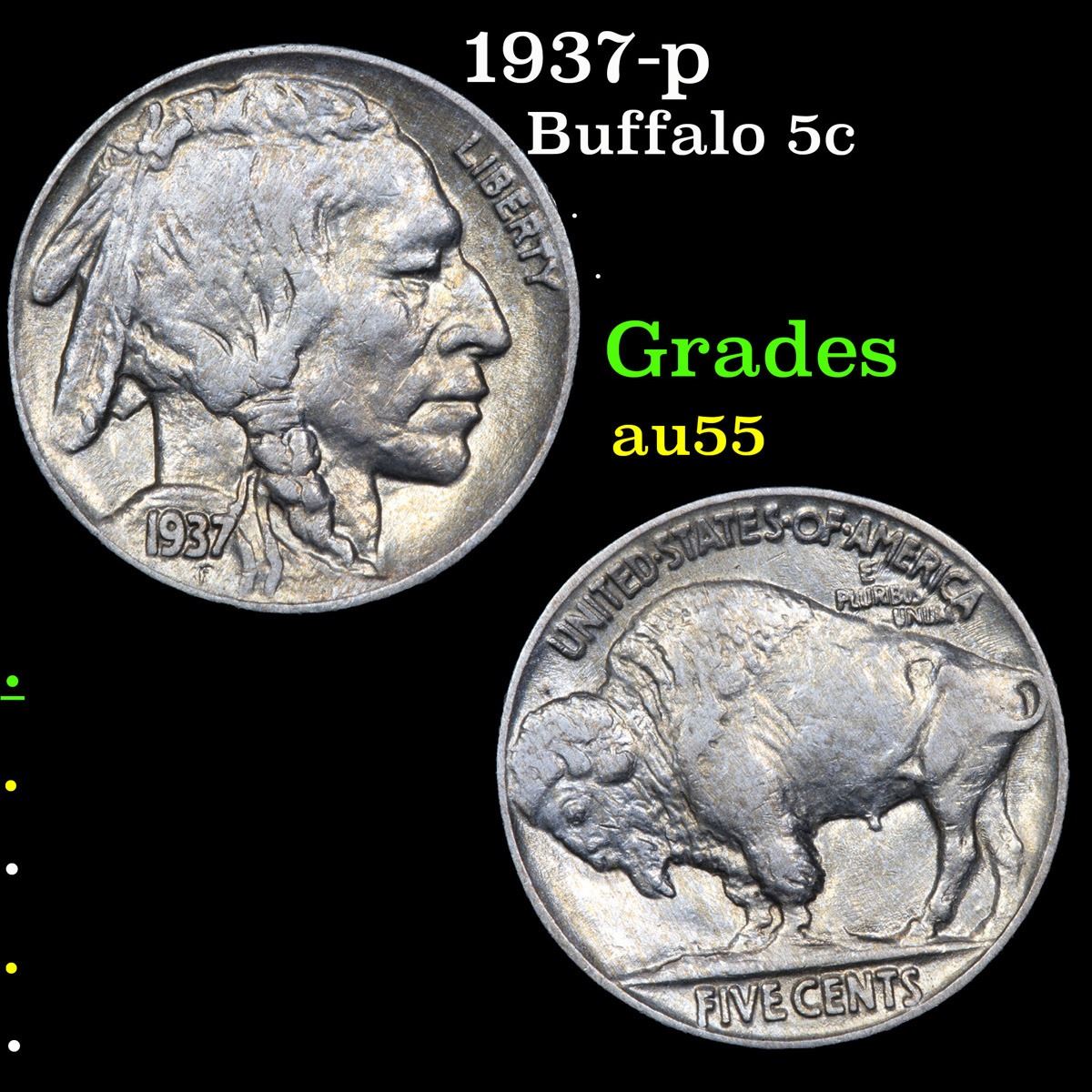 1937-p . . Buffalo Nickel 5c Grades Choice AU.