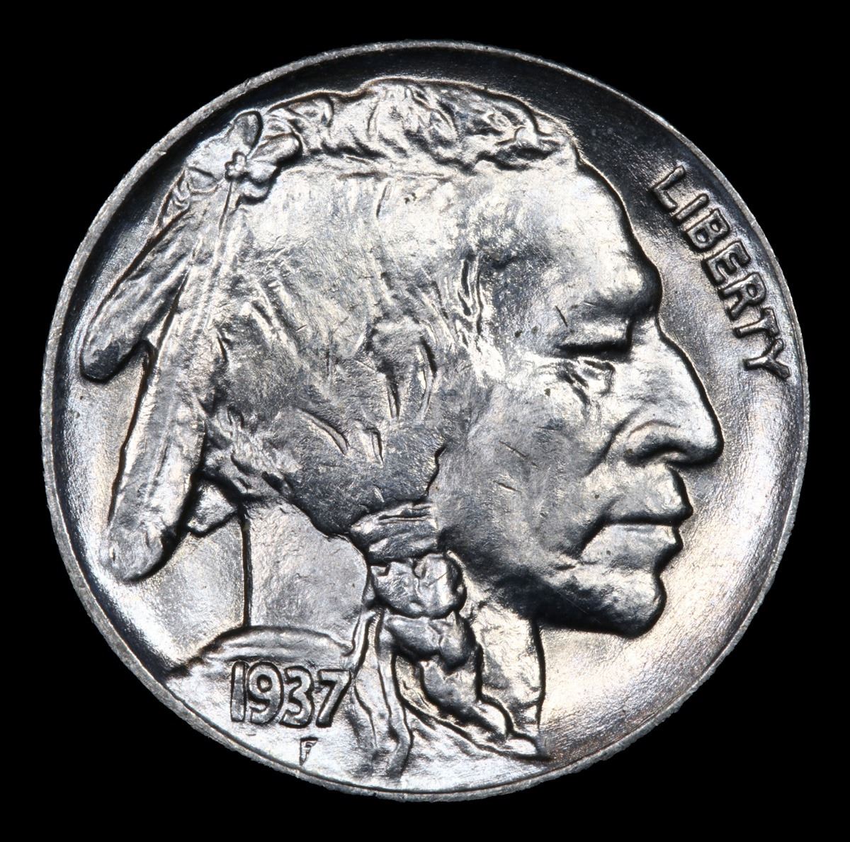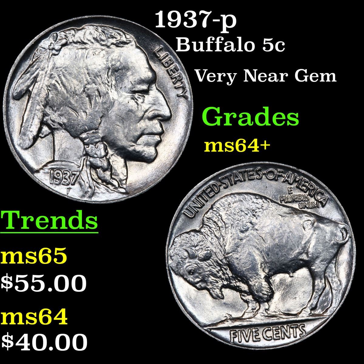 1937-p . Very Near Gem Buffalo Nickel 5c Grades Choice+ Unc.