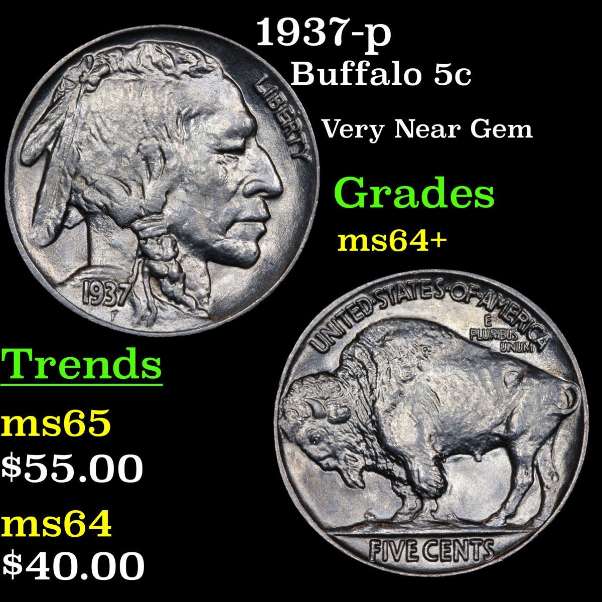 1937-p Buffalo Nickel 5c Grades Choice+ Unc.