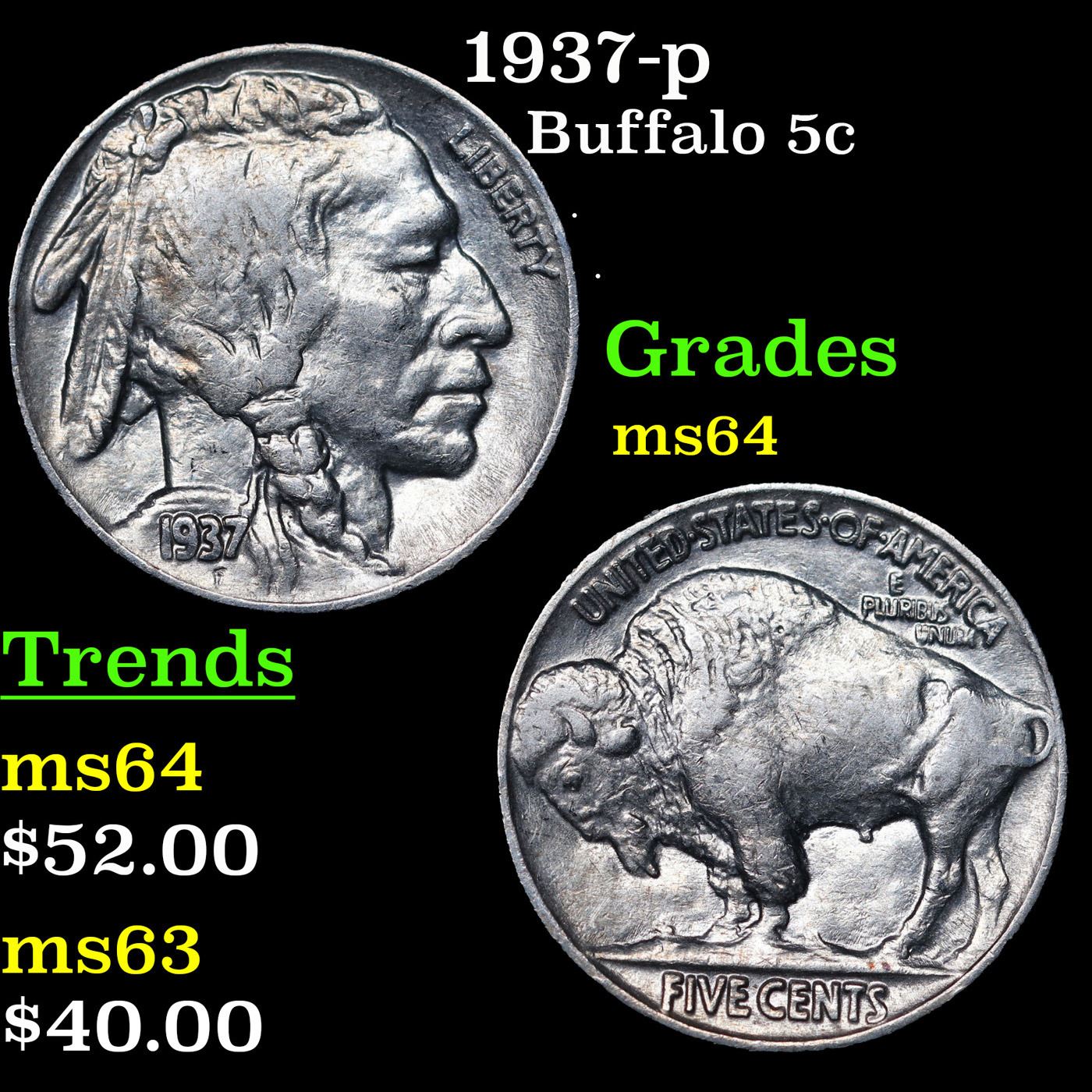 1937-p Buffalo Nickel 5c Grades Choice Unc.