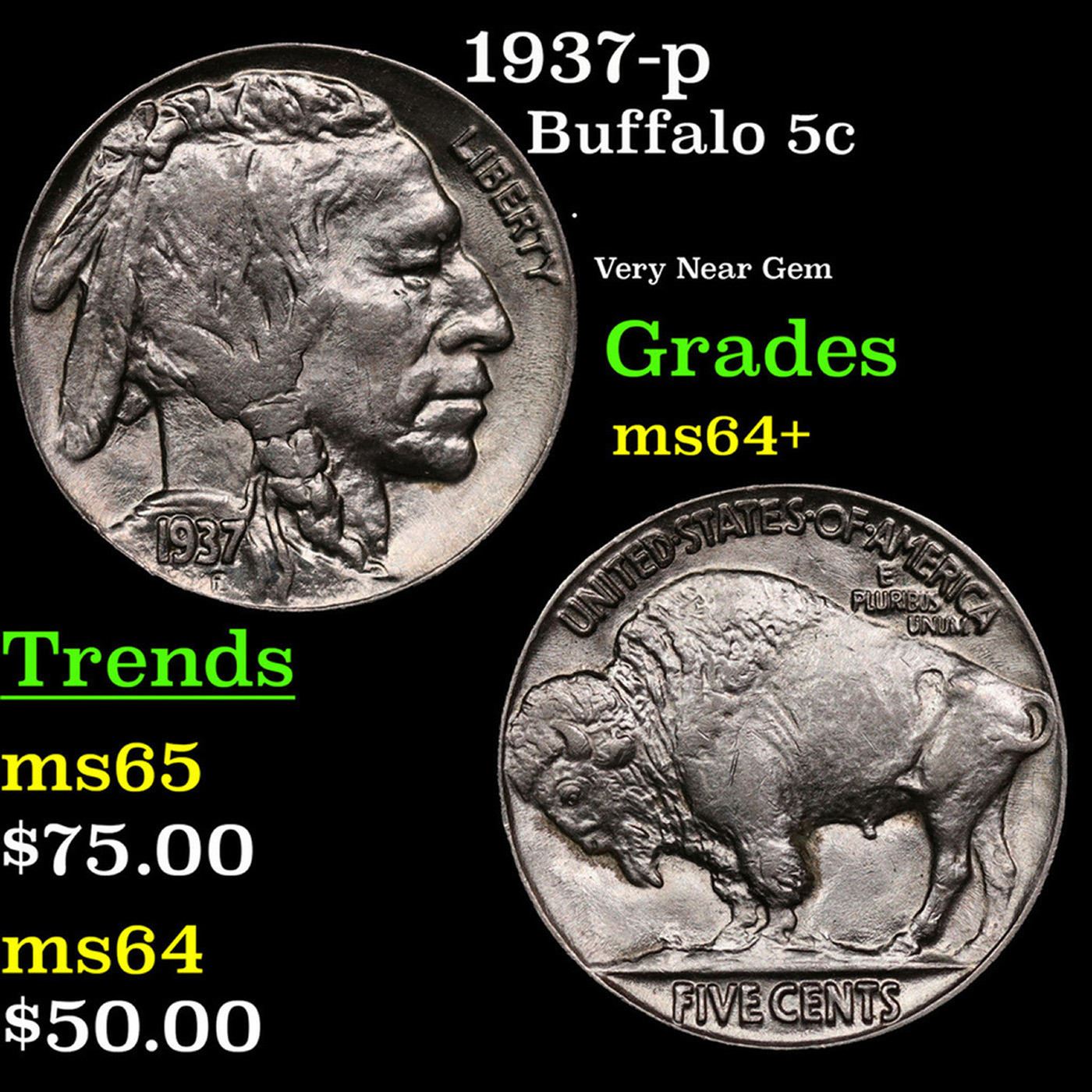 1937-p Buffalo Nickel 5c Grades Choice+ Unc.