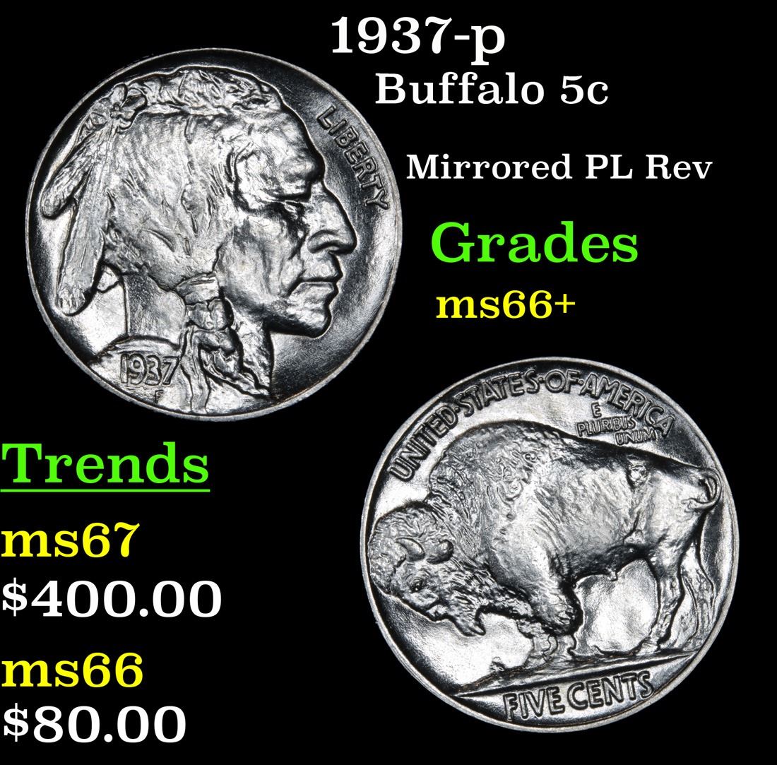 1937-p Morrored PL Rev . Buffalo Nickel 5c Grades GEM++ Unc. A Corey's Pick