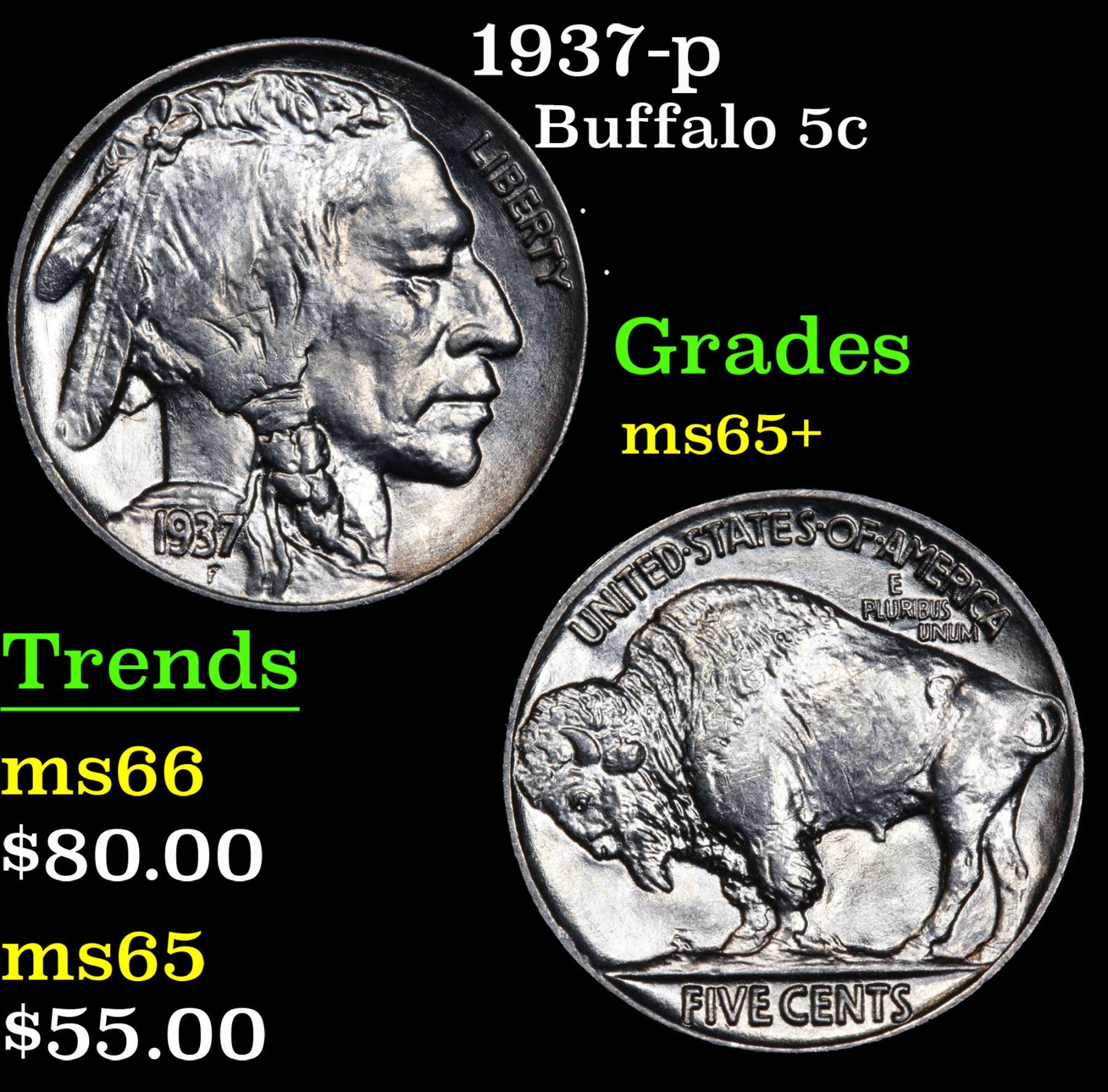 1937-p . . Buffalo Nickel 5c Grades GEM+ Unc.