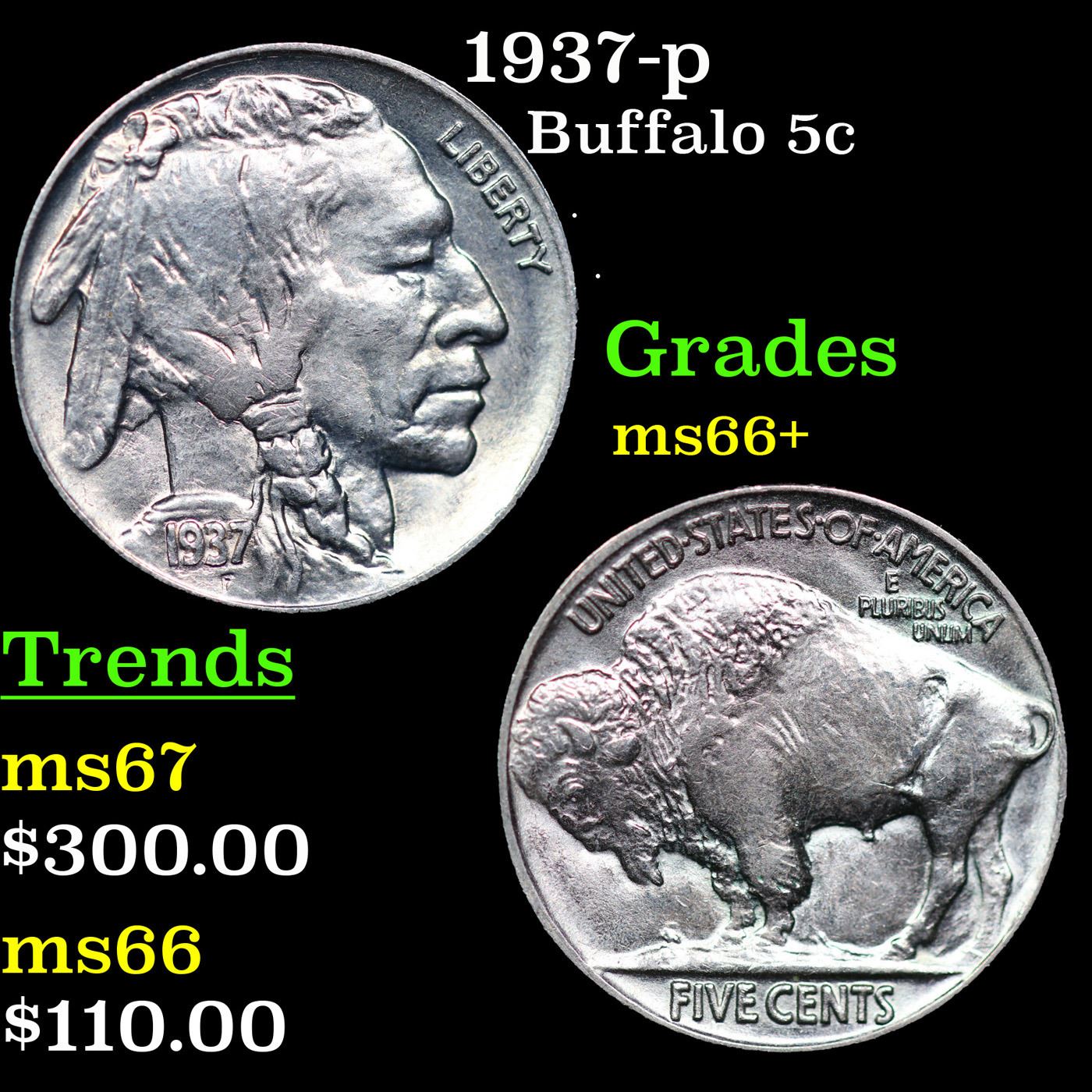 1937-p Buffalo Nickel 5c Grades GEM++ Unc.