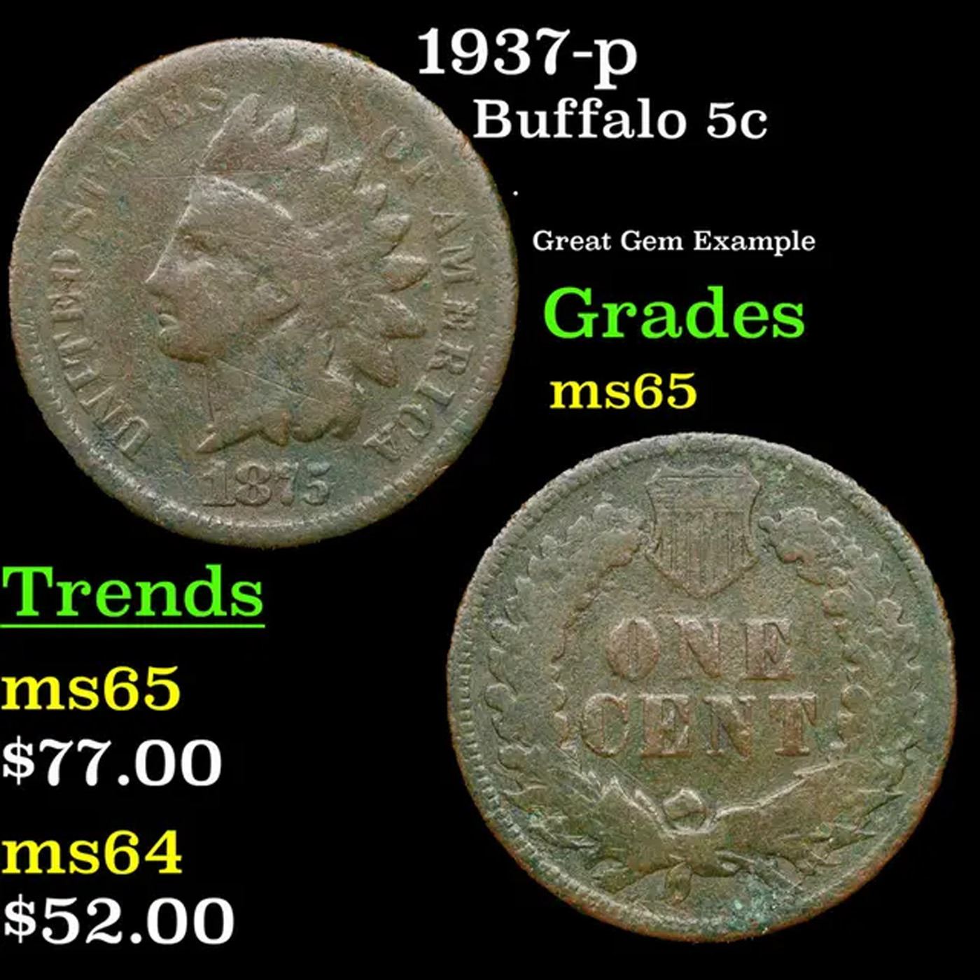1937-p Buffalo Nickel 5c Grades GEM Unc.