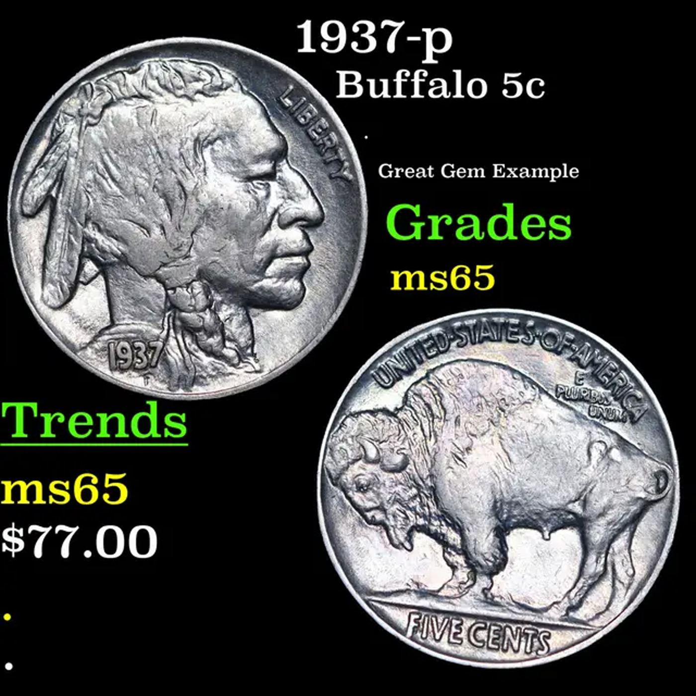 1937-p Buffalo Nickel 5c Grades GEM Unc.