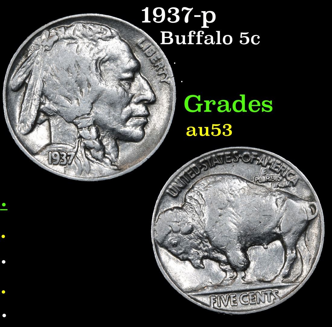 1937-p . . Buffalo Nickel 5c Grades Select AU.