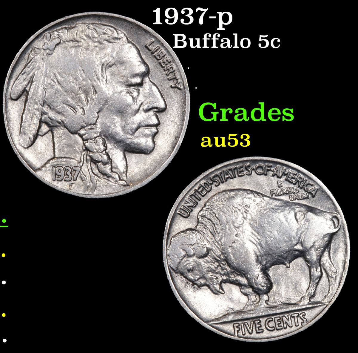 1937-p . . Buffalo Nickel 5c Grades Select AU.