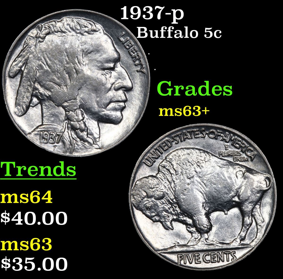 1937-p . . Buffalo Nickel 5c Grades Select+ Unc.