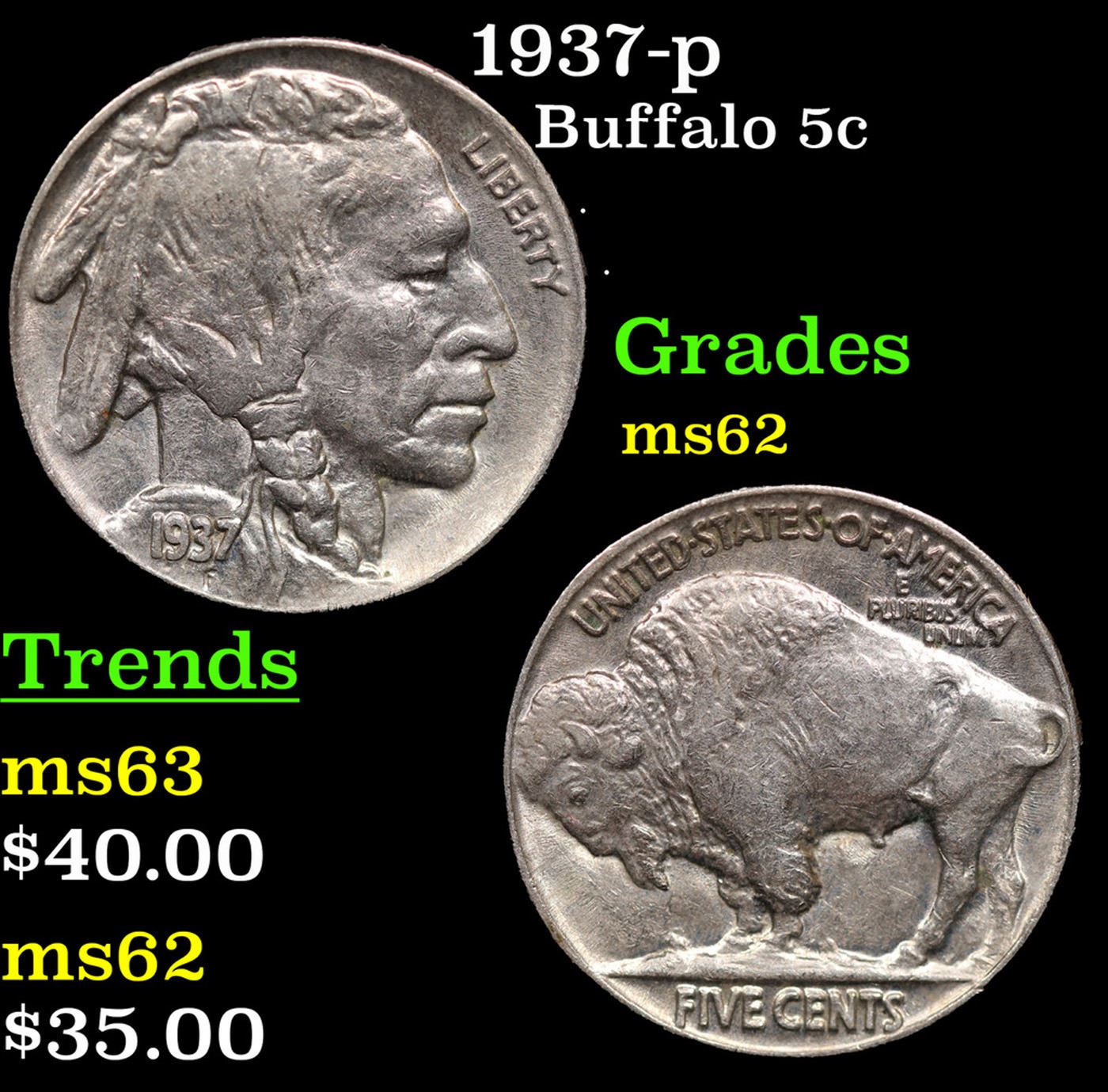 1937-p Buffalo Nickel 5c Grades Select Unc.