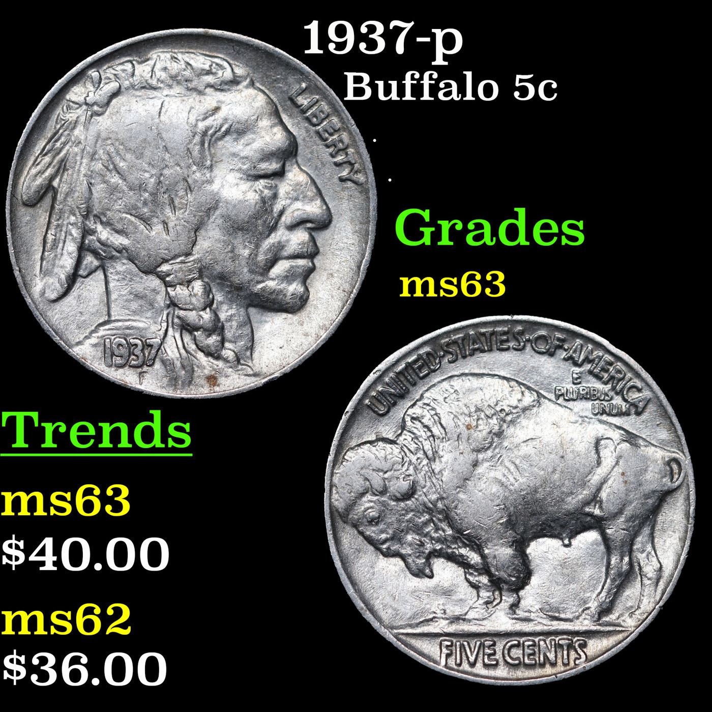 1937-p Buffalo Nickel 5c Grades Select Unc.