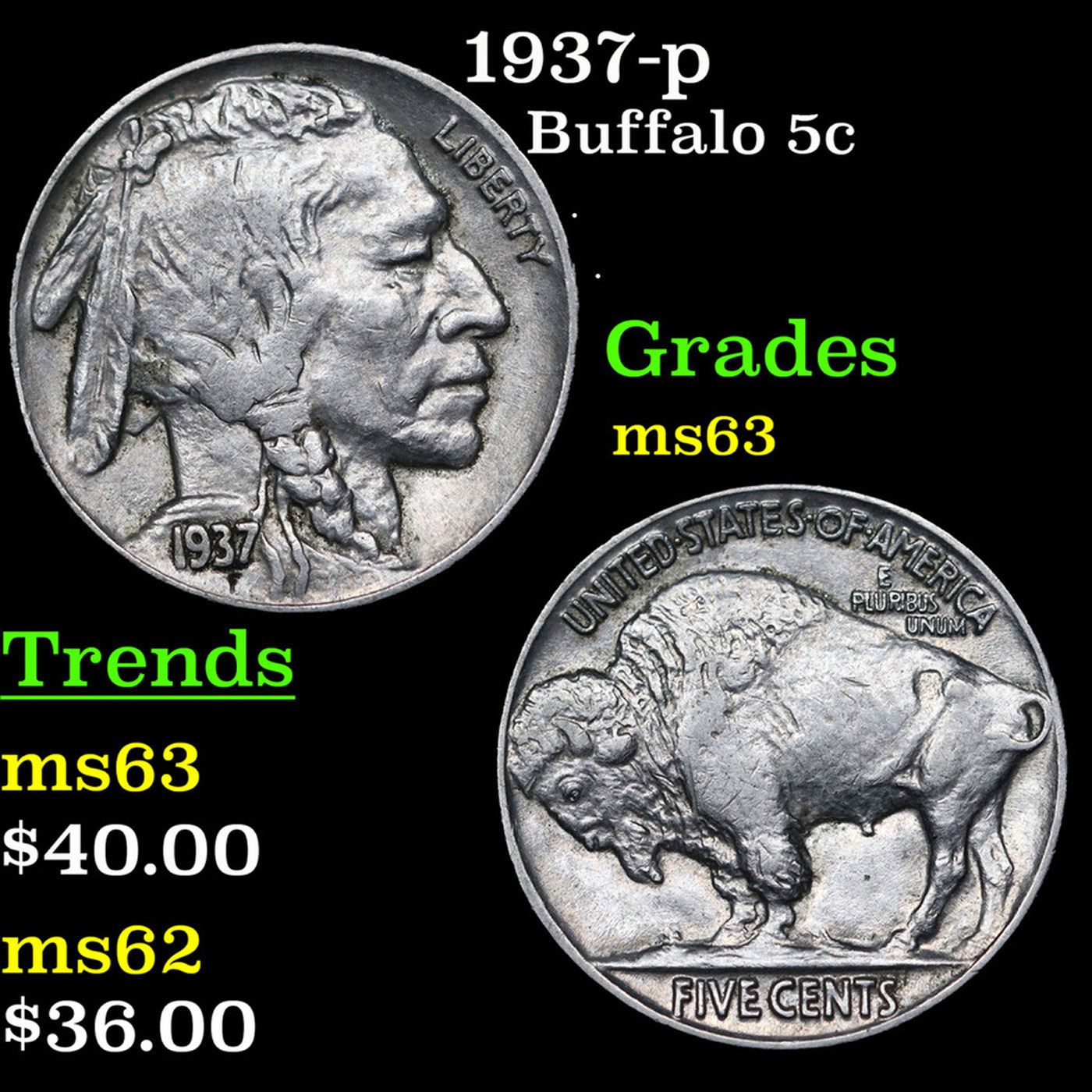 1937-p Buffalo Nickel 5c Grades Select Unc.