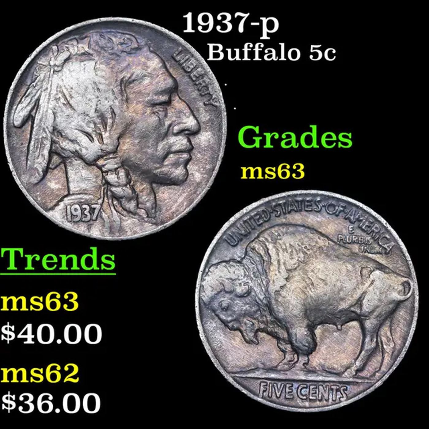 1937-p Buffalo Nickel 5c Grades Select Unc.