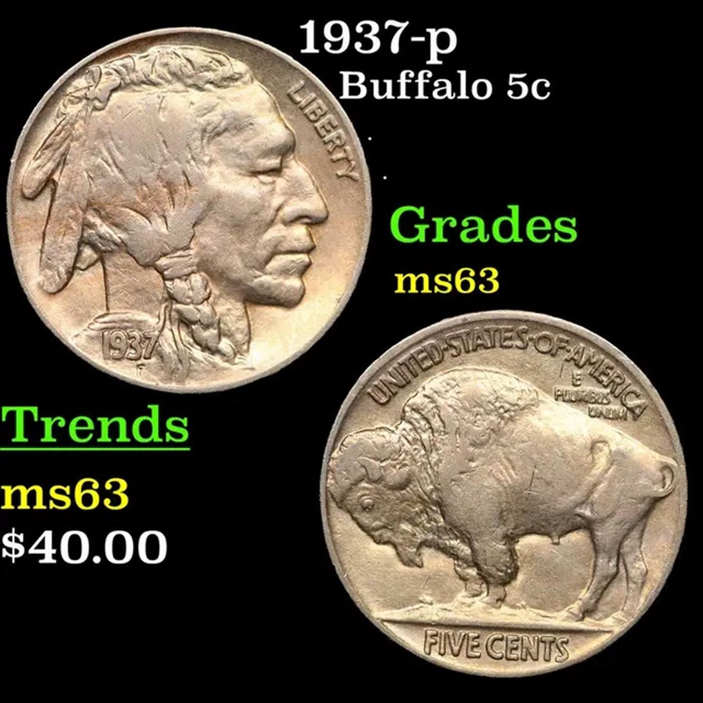 1937-p Buffalo Nickel 5c Grades Select Unc.