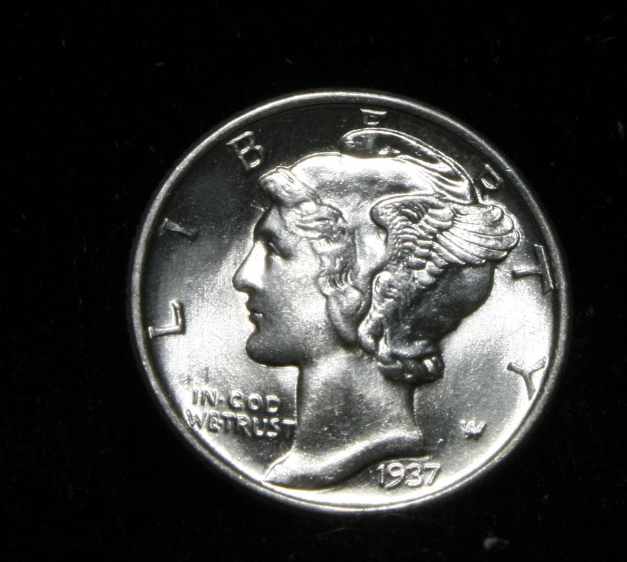 A Great Full Split Band Mercury. Great Luster, Great Strike. I received about 10 stunning Mercurys from one consignee each is more beautiful than the next. This is one of the 10, all 10 are up today. Coin World's Coin Values lists ms65 FSB as $50 and The Wholesale Greysheet lists ms65 FSB at $36. Estimated Value $40.