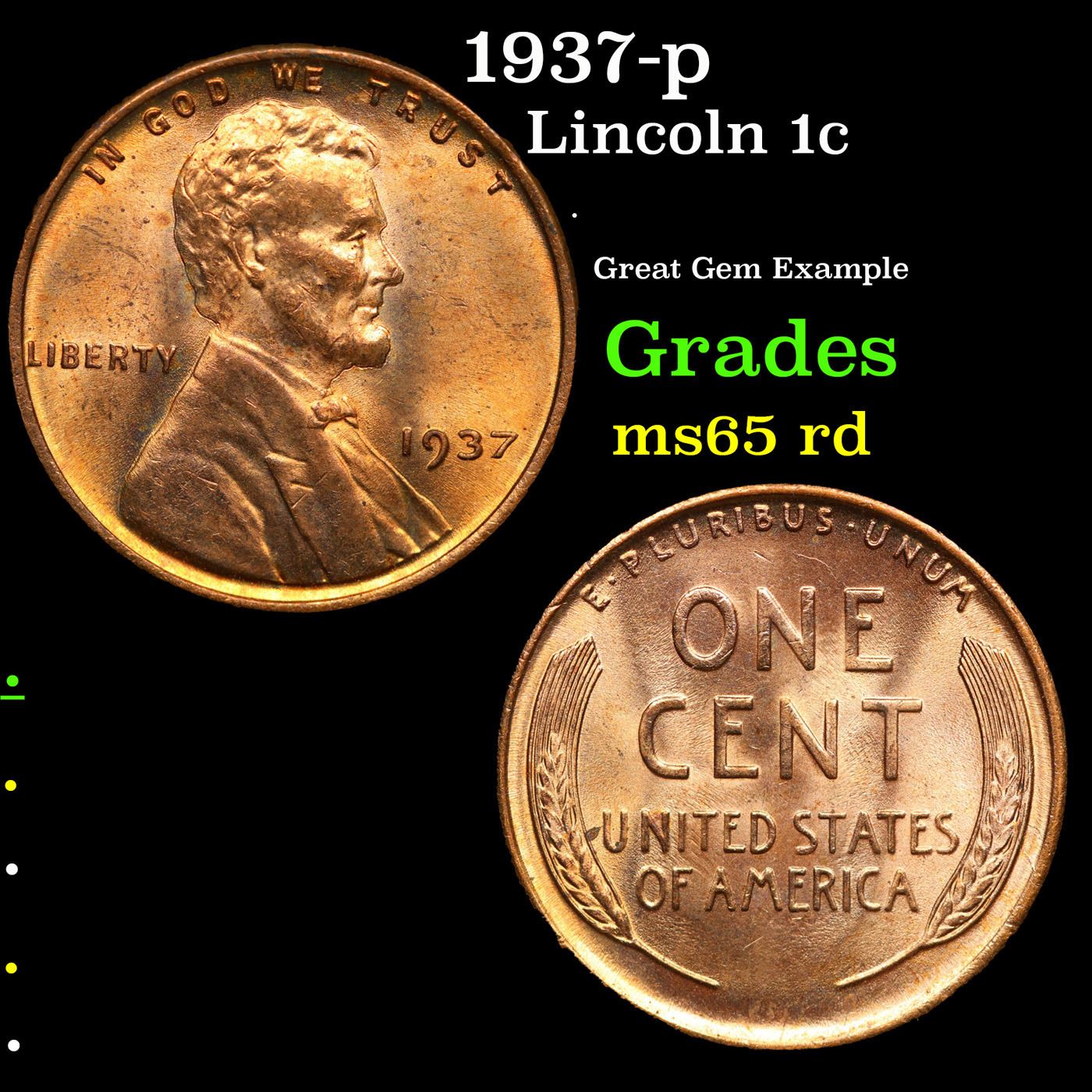 1937-p Lincoln Cent 1c Grades GEM Unc RD.
