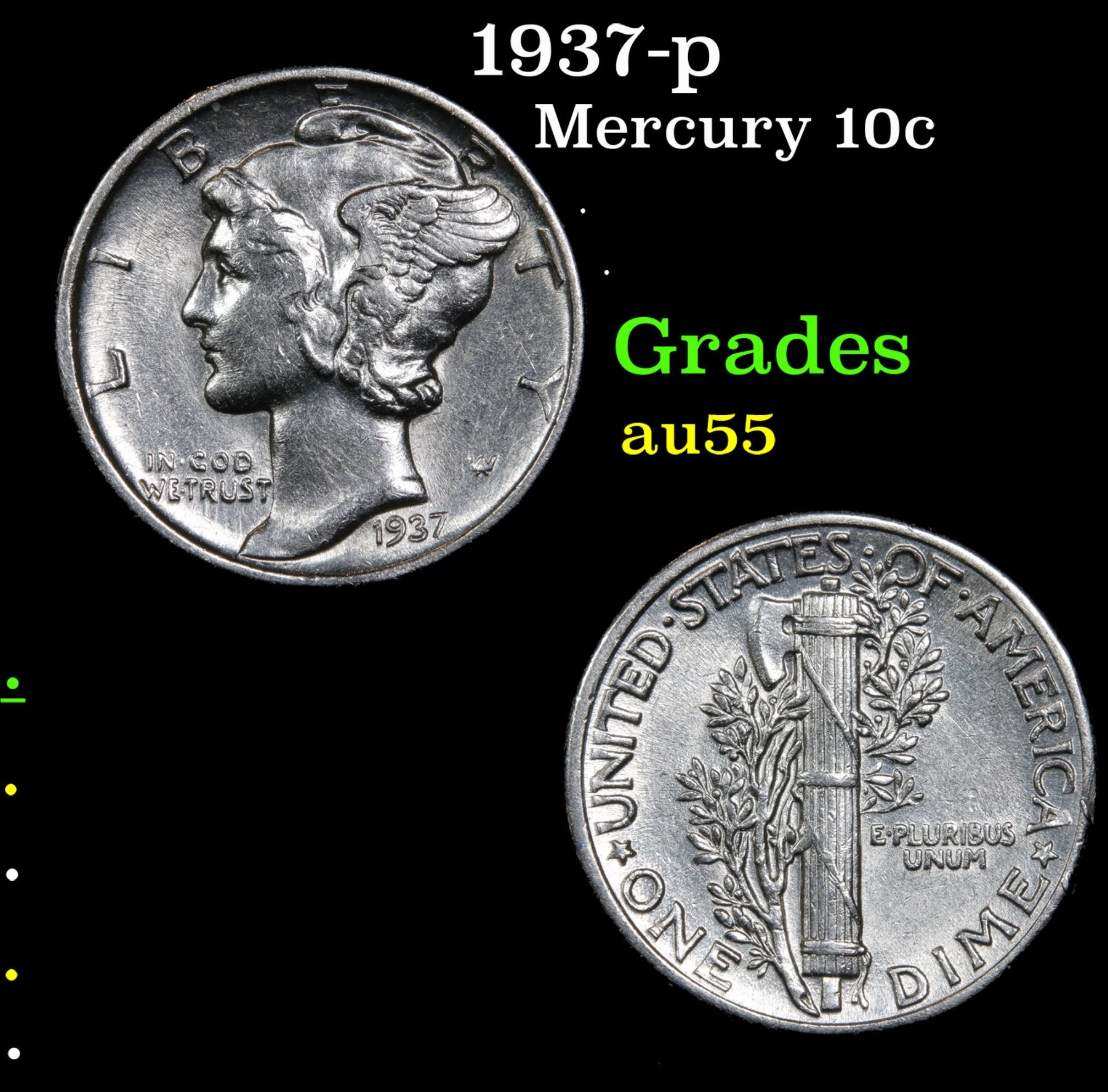 1937-p . . Mercury Dime 10c Grades Choice AU.
