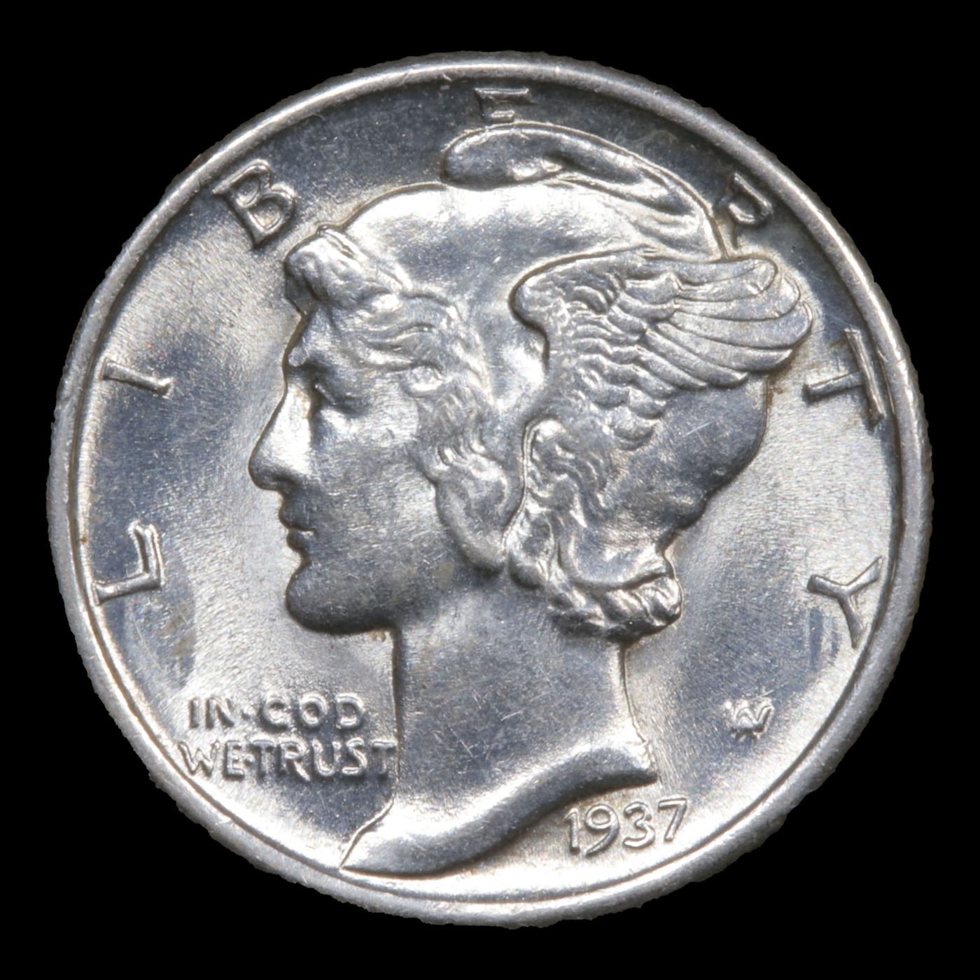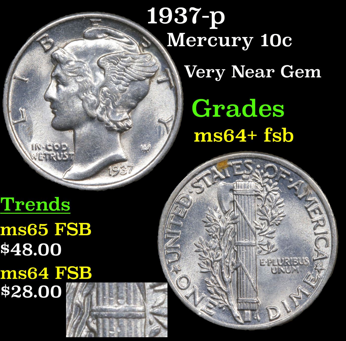 1937-p Mercury Dime 10c Grades Choice Unc+ FSB.