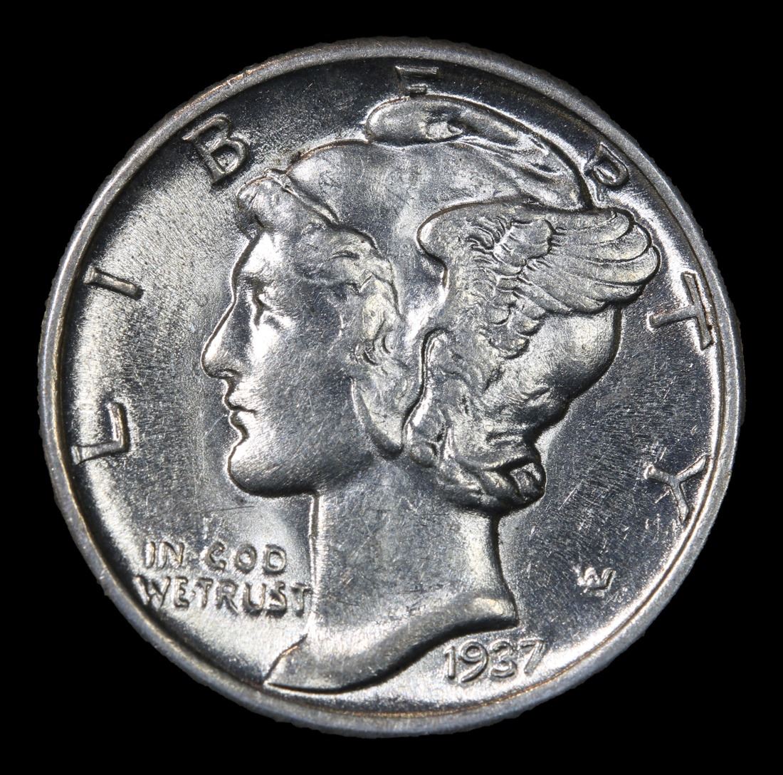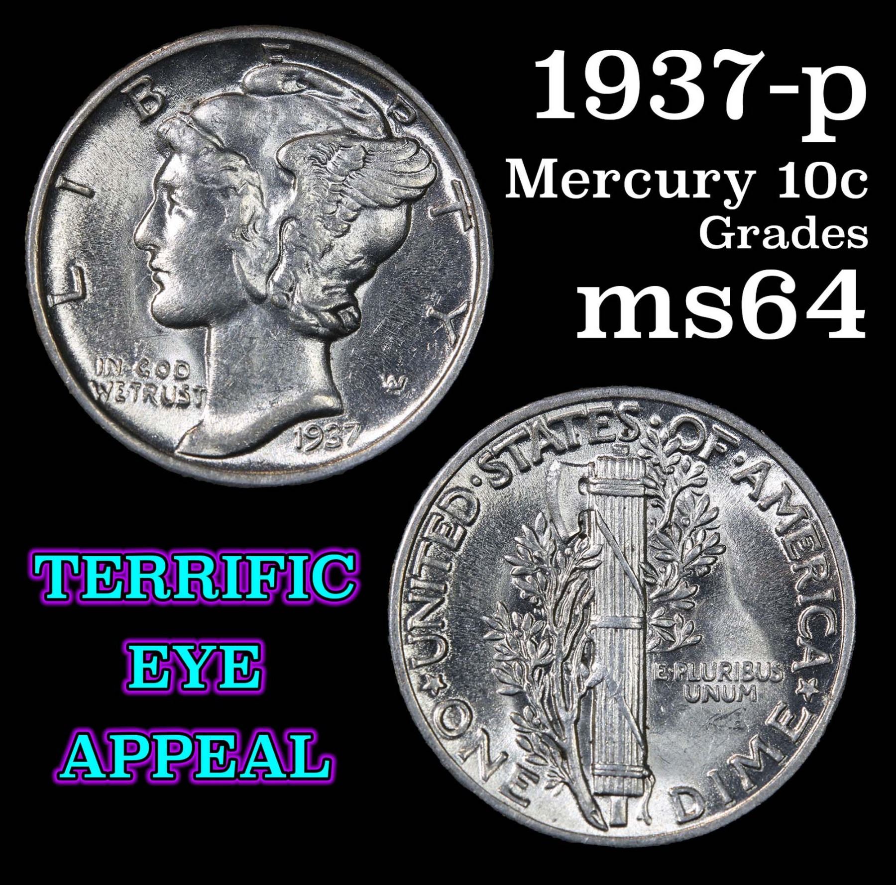1937-p Mercury Dime 10c Grades Choice Unc.
