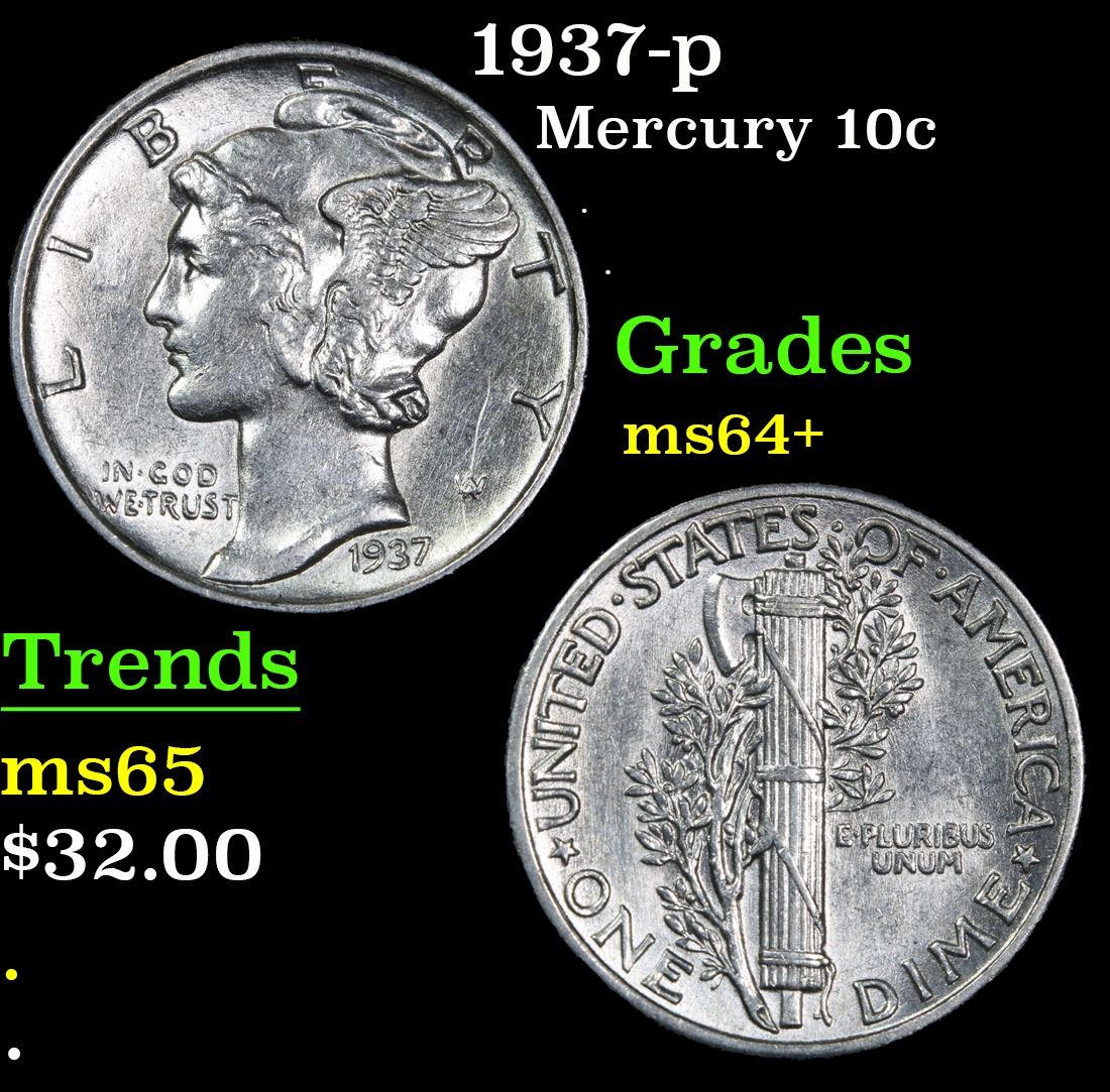 1937-p . . Mercury Dime 10c Grades Choice+ Unc.