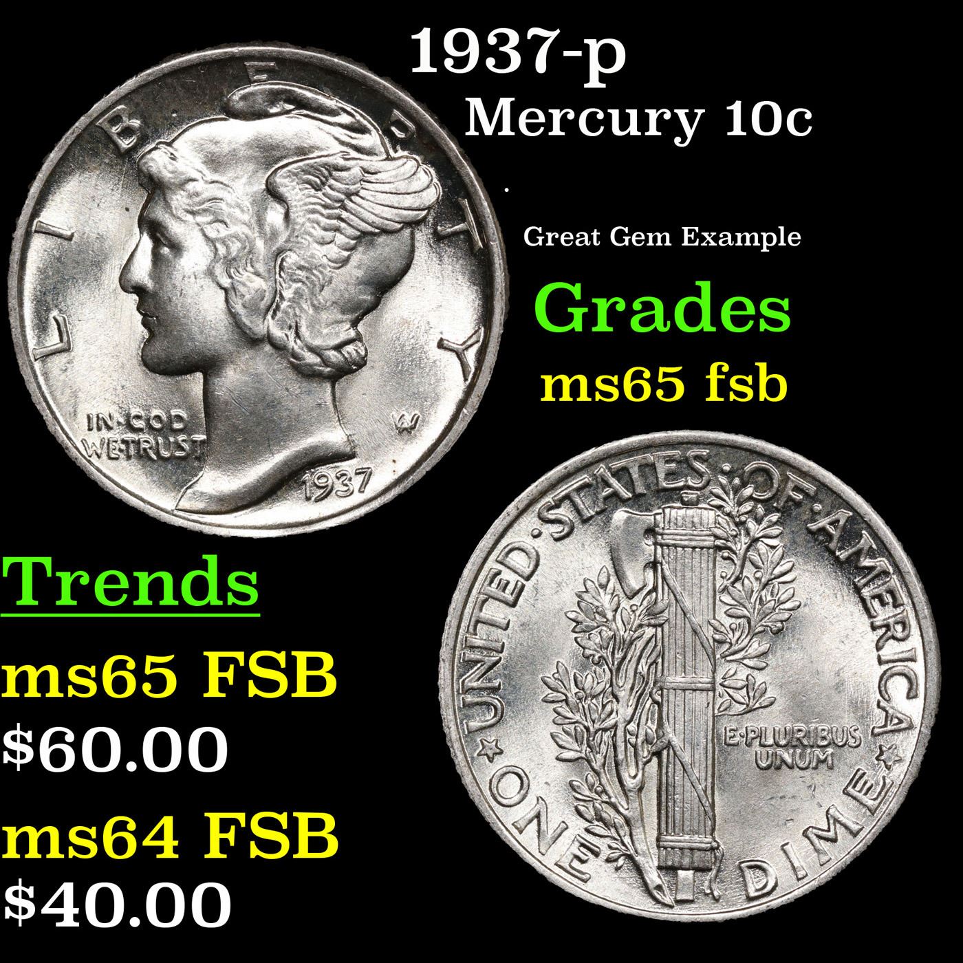 1937-p Mercury Dime 10c Grades GEM FSB.