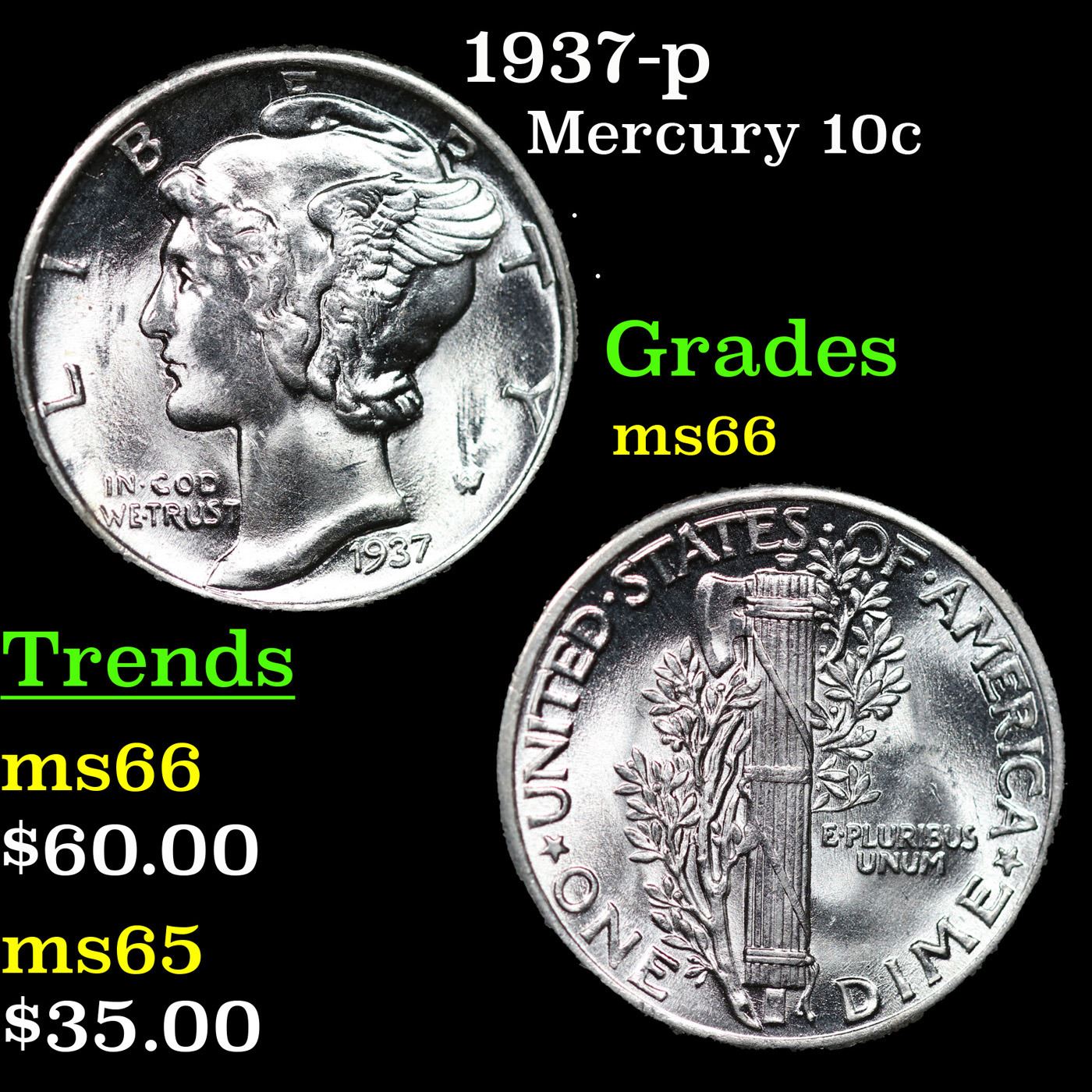 1937-p Mercury Dime 10c Grades GEM+ Unc.