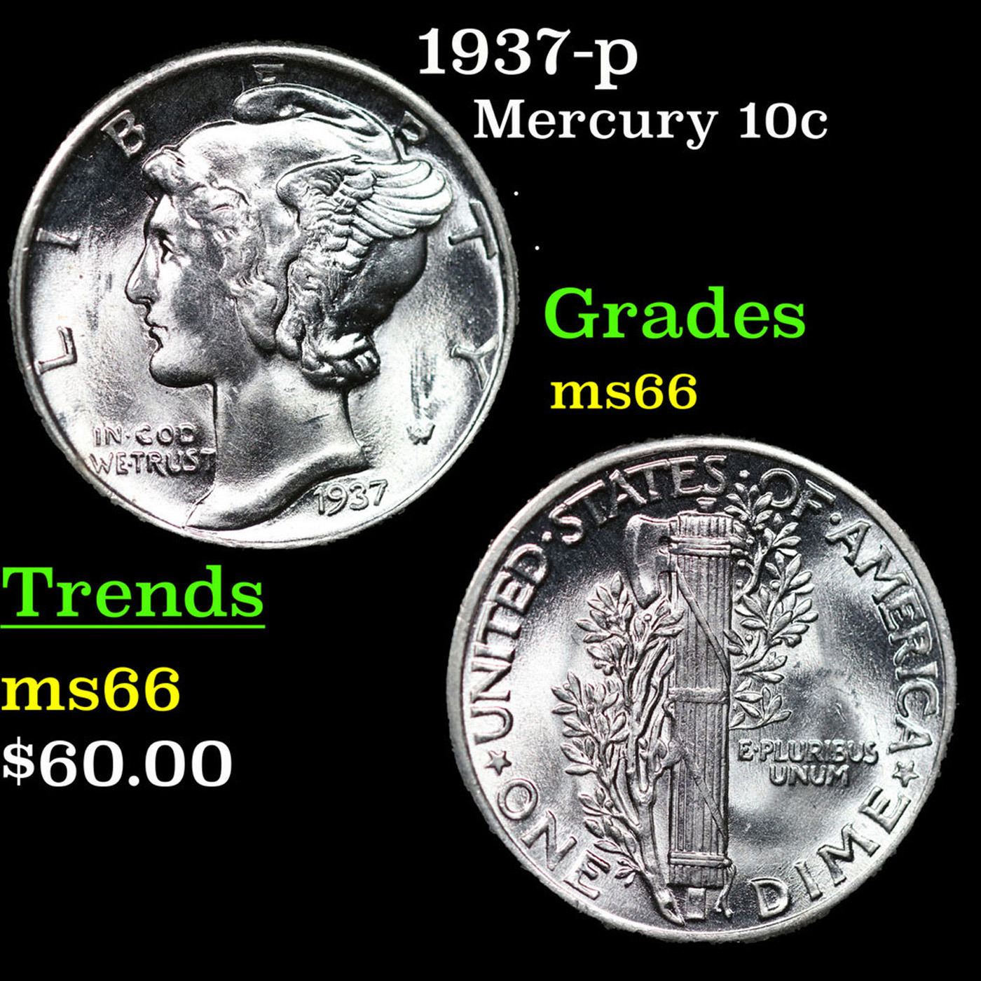 1937-p Mercury Dime 10c Grades GEM+ Unc.