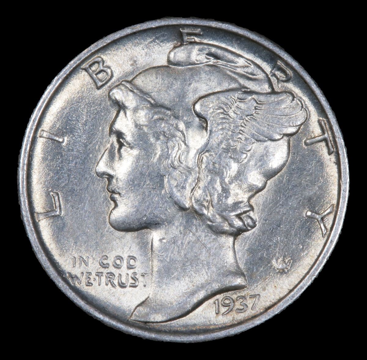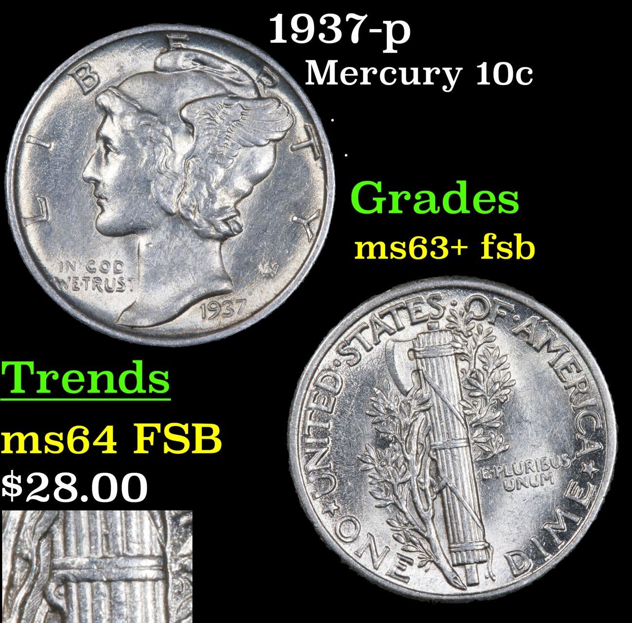 1937-p . . Mercury Dime 10c Grades Select Unc+ FSB.