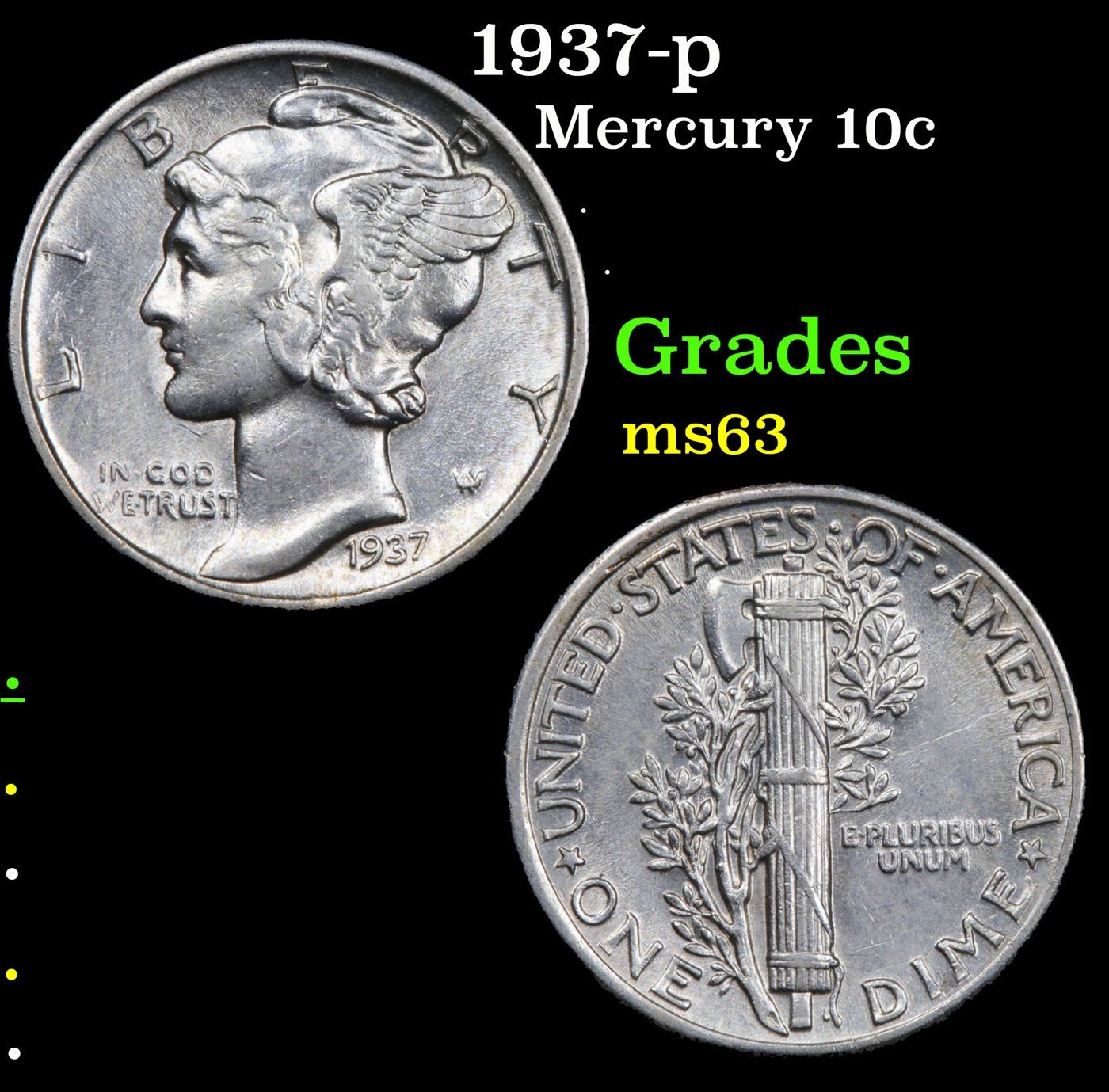 1937-p Mercury Dime 10c Grades Select Unc.
