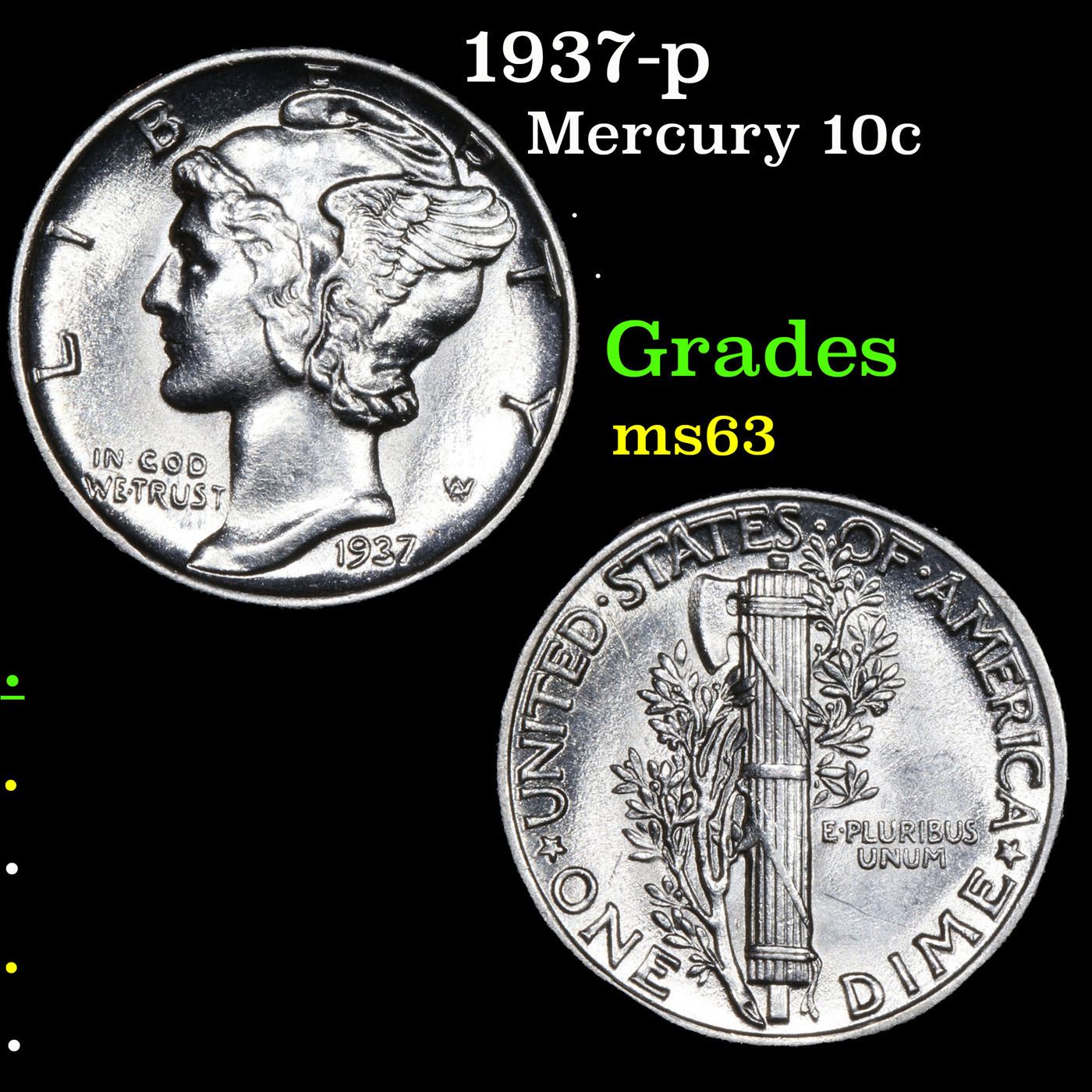 1937-p Mercury Dime 10c Grades Select Unc.