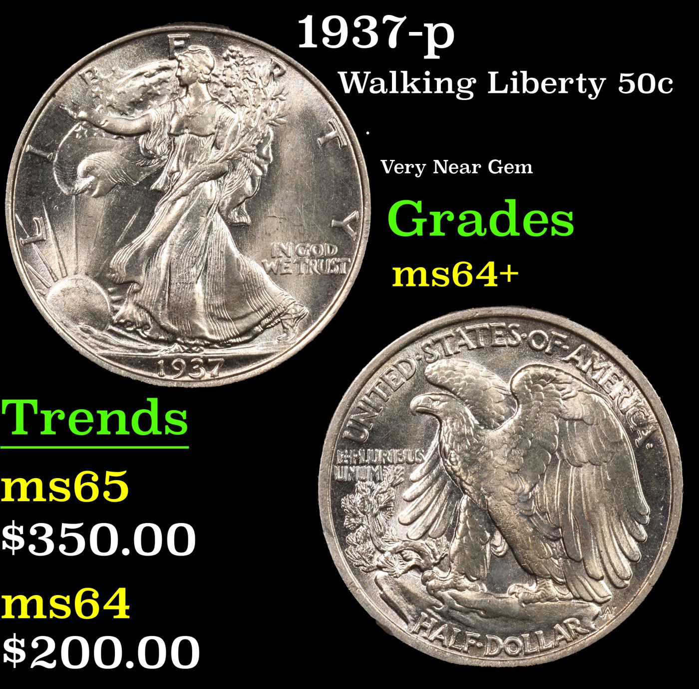 1937-p Walking Liberty Half Dollar 50c Grades Choice+ Unc.