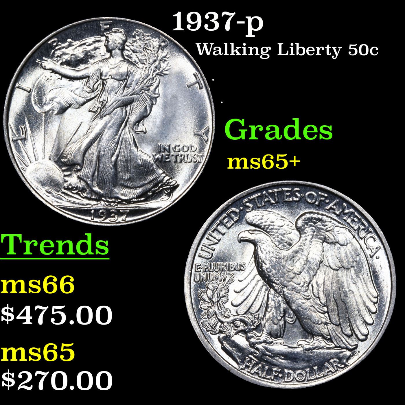 1937-p Walking Liberty Half Dollar 50c Grades GEM+ Unc.
