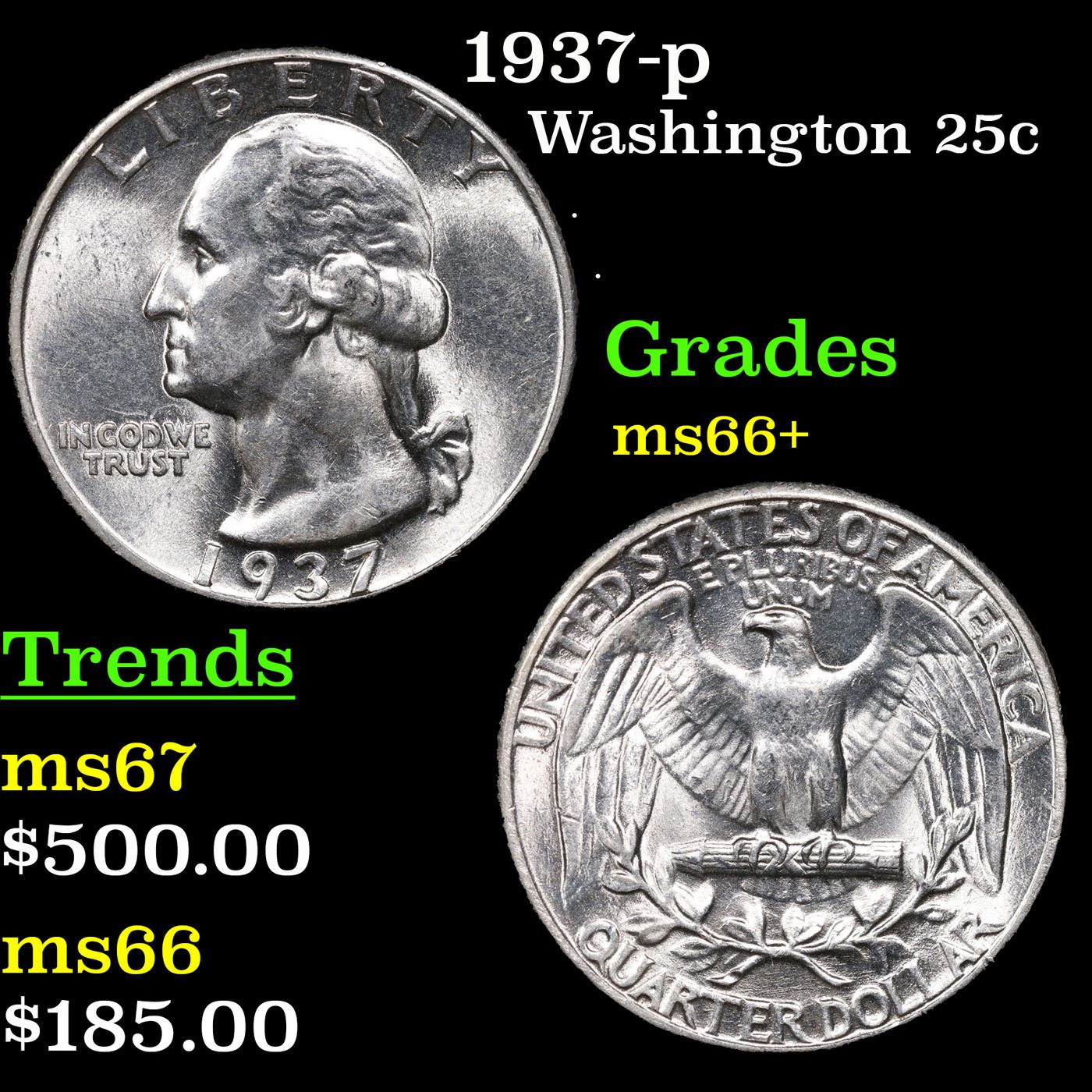 1937-p Washington Quarter 25c Grades GEM++ Unc.