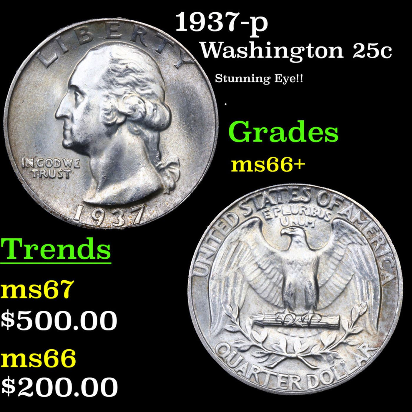 1937-p Washington Quarter 25c Grades GEM++ Unc.