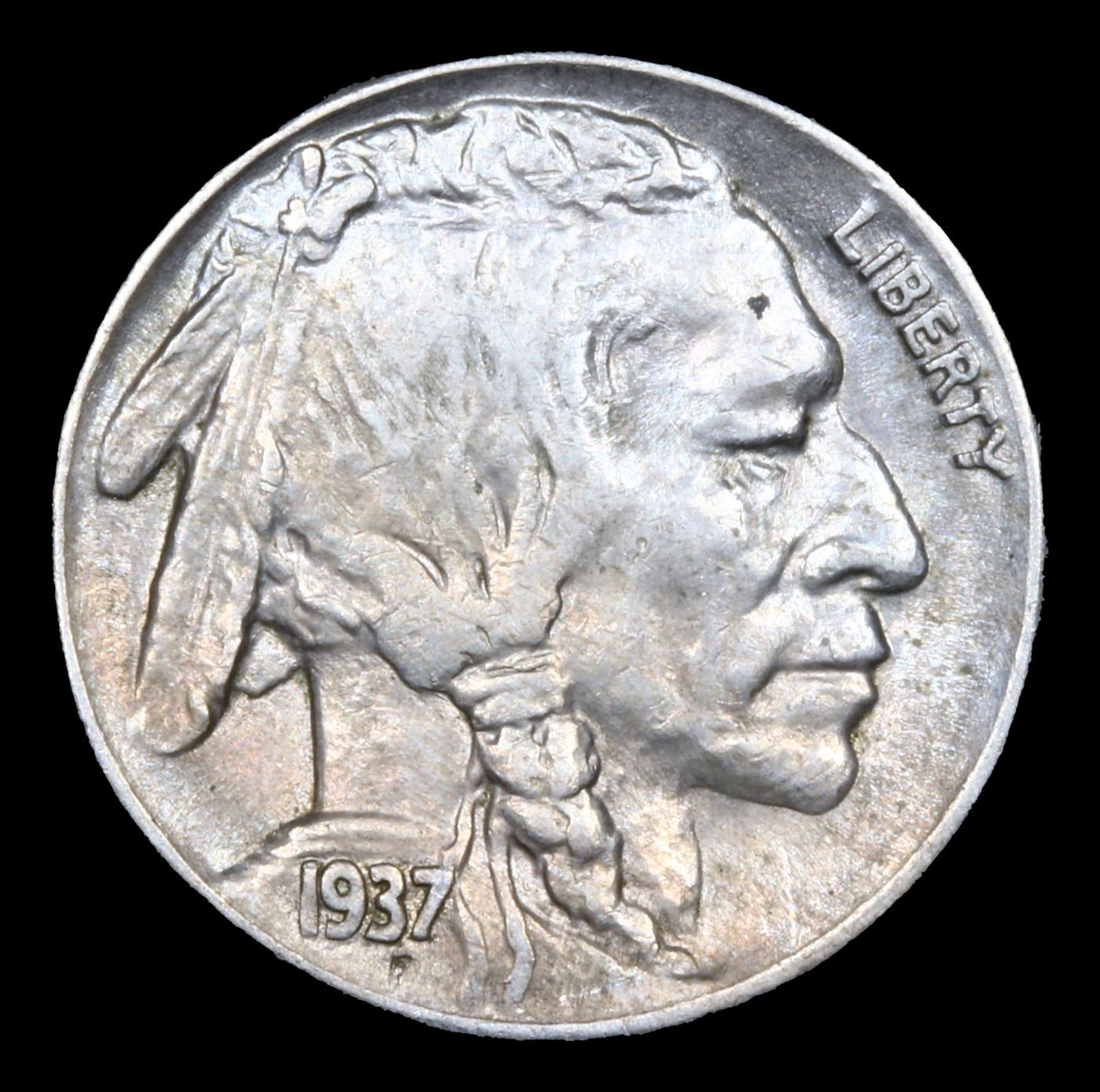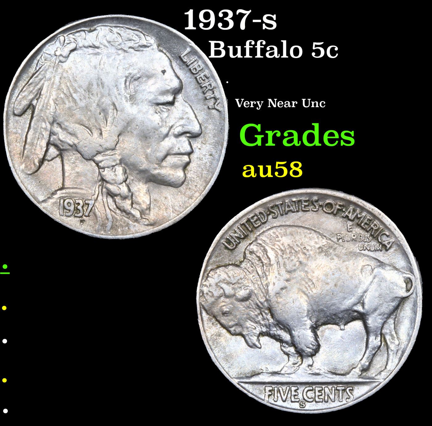 1937-s Buffalo Nickel 5c Grades Choice AU/BU Slider.