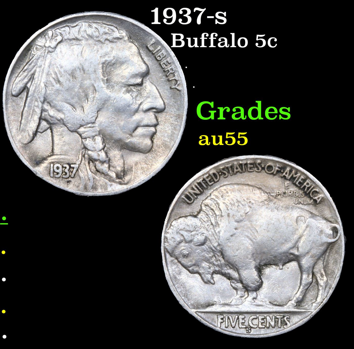 1937-s Buffalo Nickel 5c Grades Choice AU.