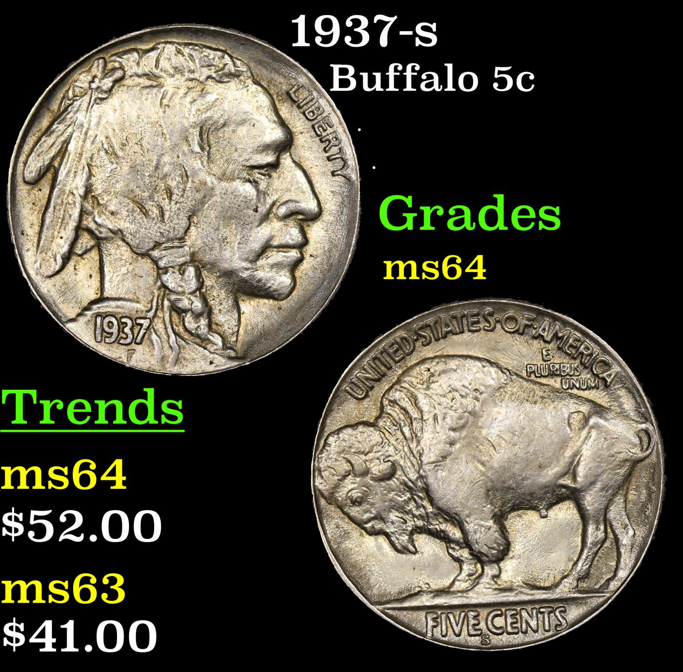 1937-s Buffalo Nickel 5c Grades Choice Unc.