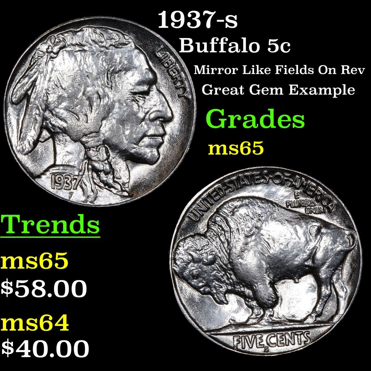 1937-s Mirror Like Fields On Rev Great Gem Example Buffalo Nickel 5c Grades GEM Unc.