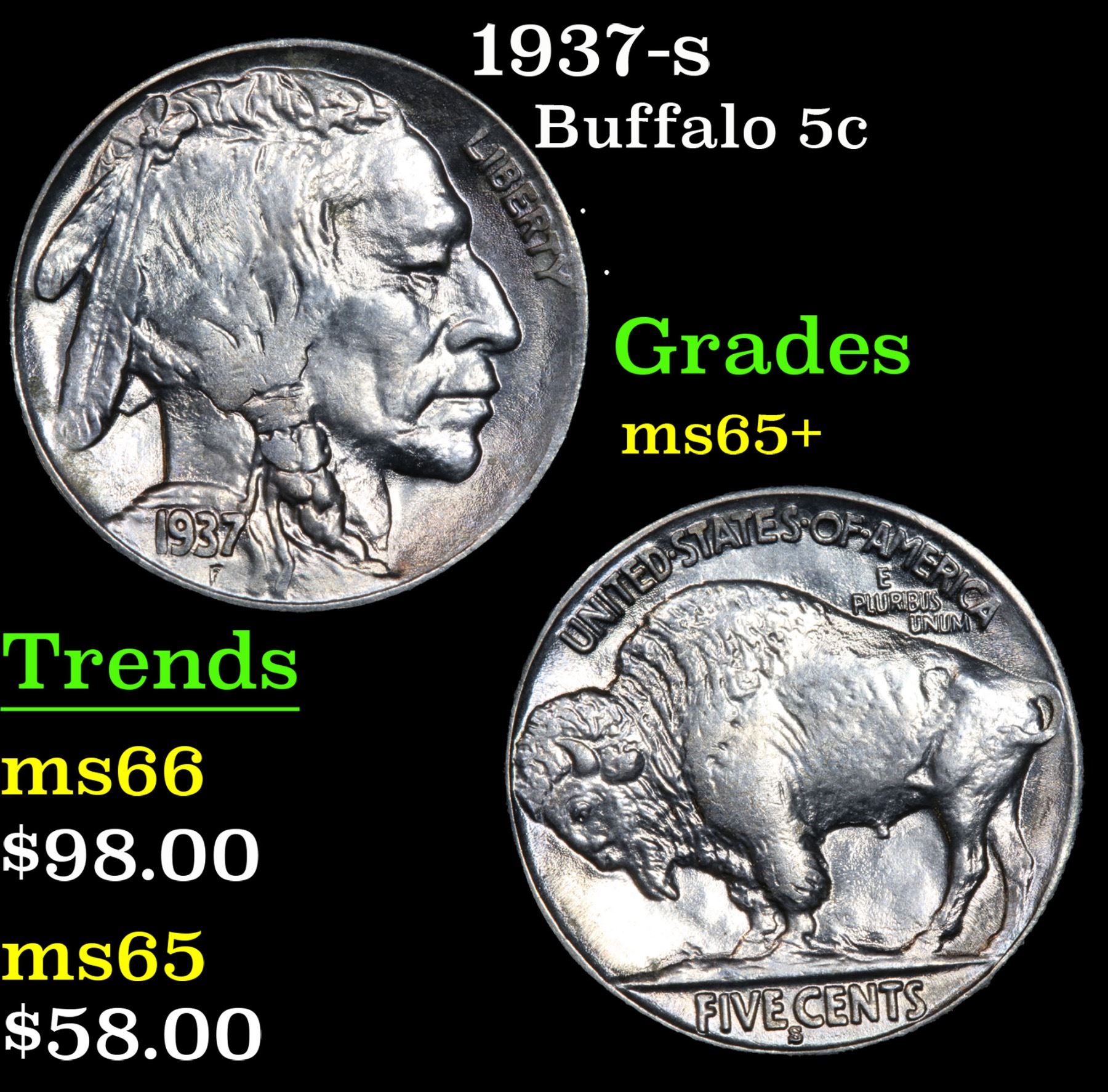 1937-s . . Buffalo Nickel 5c Grades GEM+ Unc.