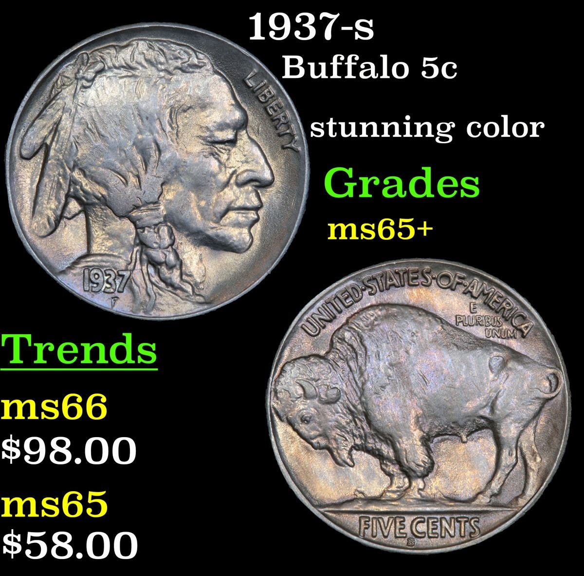 1937-s Buffalo Nickel 5c Grades GEM+ Unc.