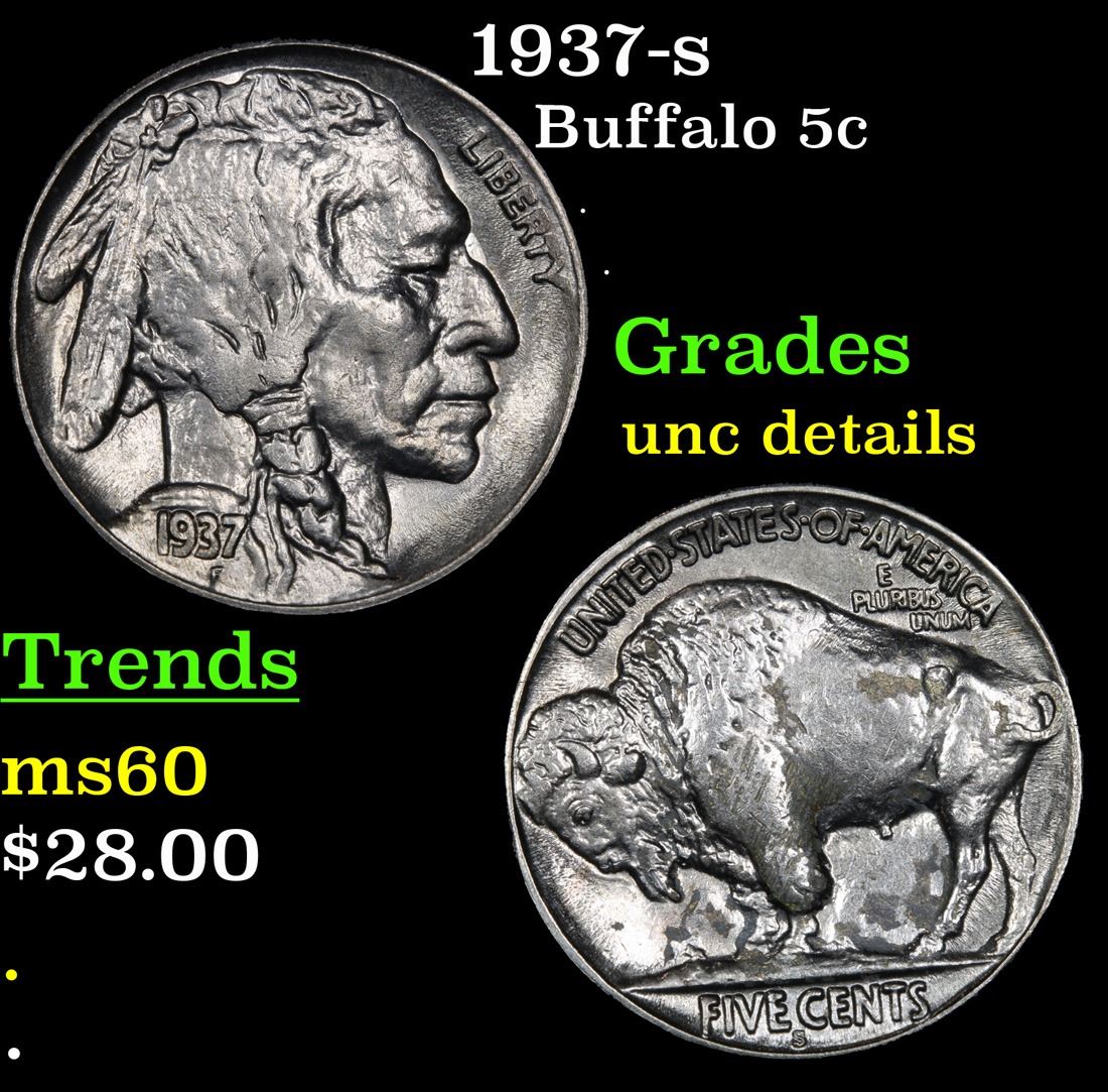 1937-s . . Buffalo Nickel 5c Grades Unc Details.
