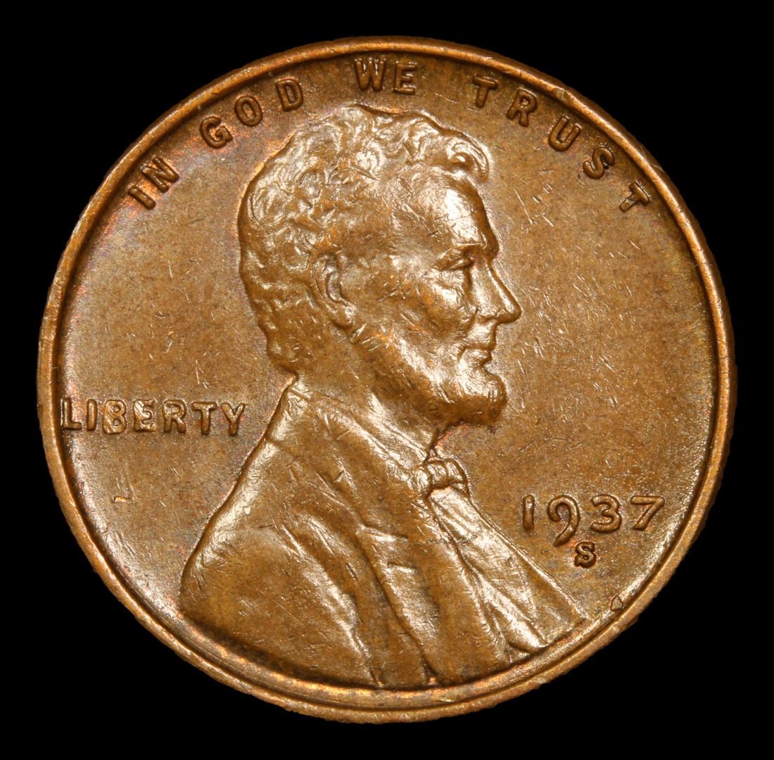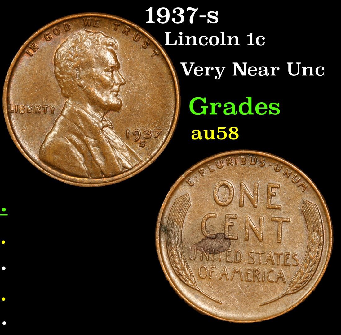 1937-s . Very Near Unc Lincoln Cent 1c Grades Choice AU/BU Slider.