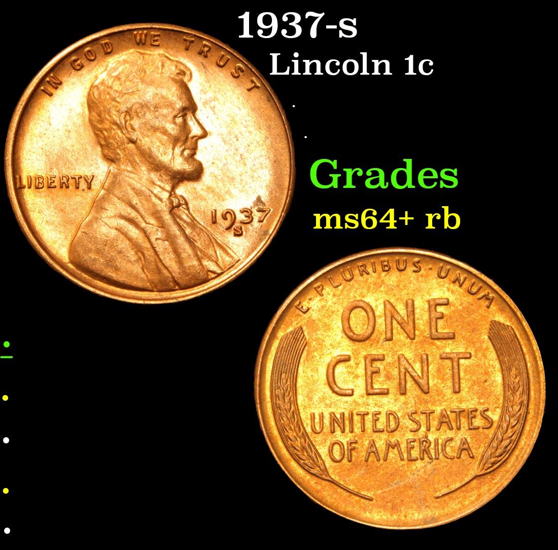 1937-s . . Lincoln Cent 1c Grades Choice+ Unc RB.