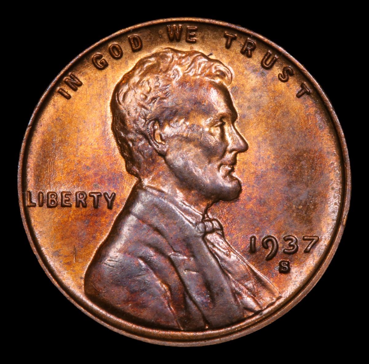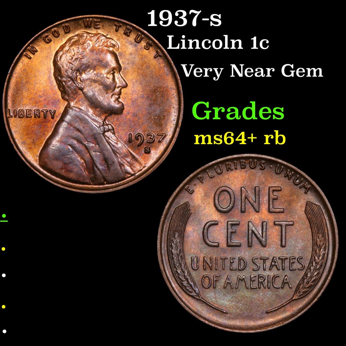 1937-s . Very Near Gem Lincoln Cent 1c Grades Choice+ Unc RB.