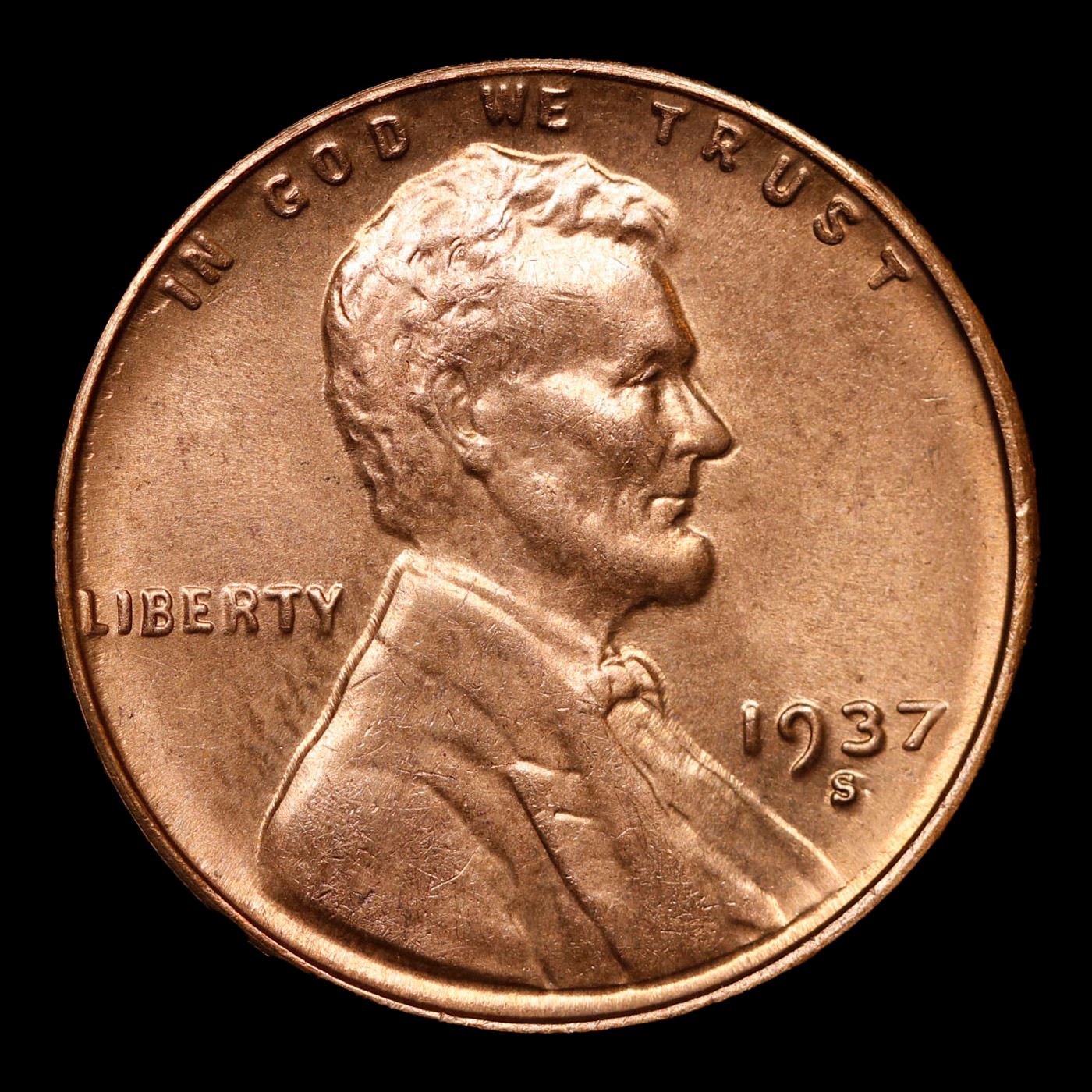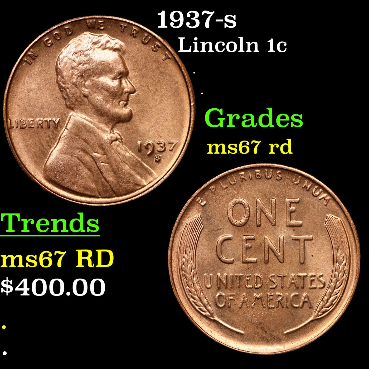 1937-s Lincoln Cent 1c Grades GEM++ Unc RD.