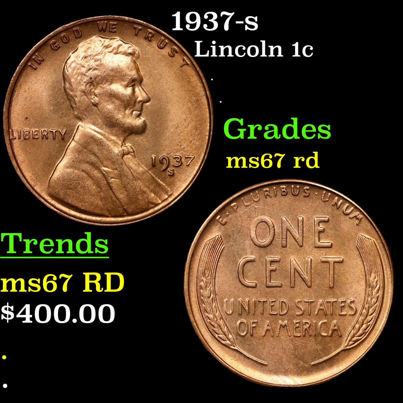 1937-s Lincoln Cent 1c Grades GEM++ Unc RD.