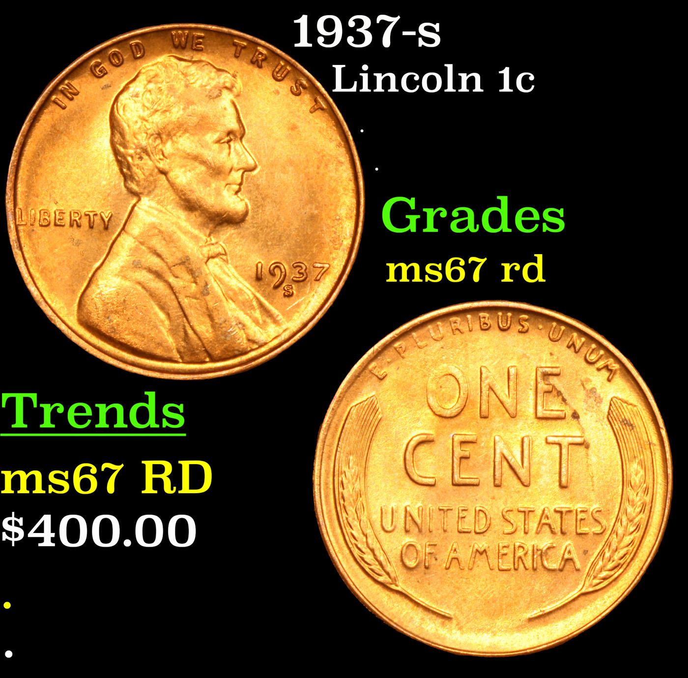1937-s Lincoln Cent 1c Grades GEM++ Unc RD.